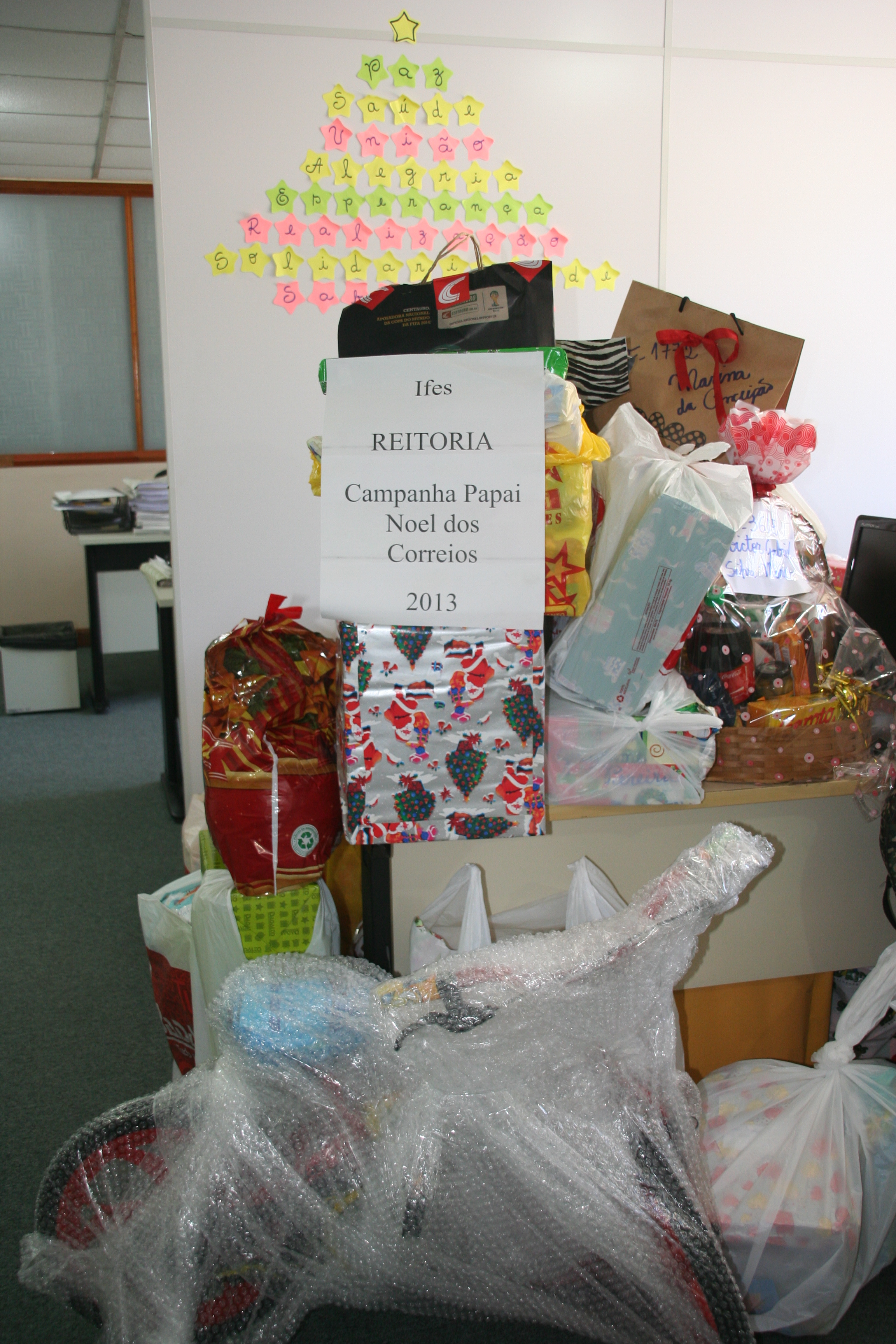 Servidores e alunos dos campi do Ifes iniciaram campanhas de Natal para promover o espírito solidário e colaborar com o final de ano de crianças e adolescentes carentes. A Reitoria e o campus Vitória aderiram à campanha Papai Noel dos Correios, realizada pelas diretorias regionais da Empresa Brasileira de Correios e Telégrafos (ECT); enquanto em Itapina, a campanha surgiu da iniciativa interna de alguns servidores do campus em conjunto com pessoas da comunidade de Colatina. Já o campus Guarapari produziu um mural comemorativo para celebrar o Natal e o Ano Novo.