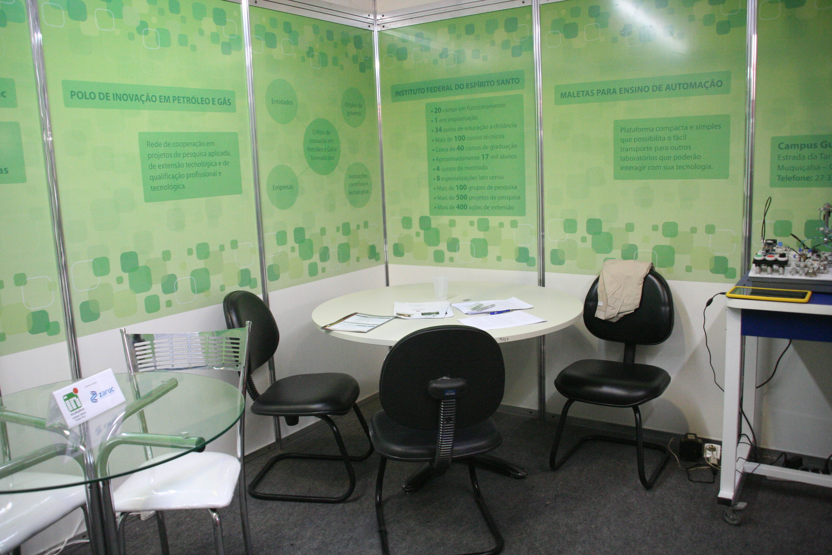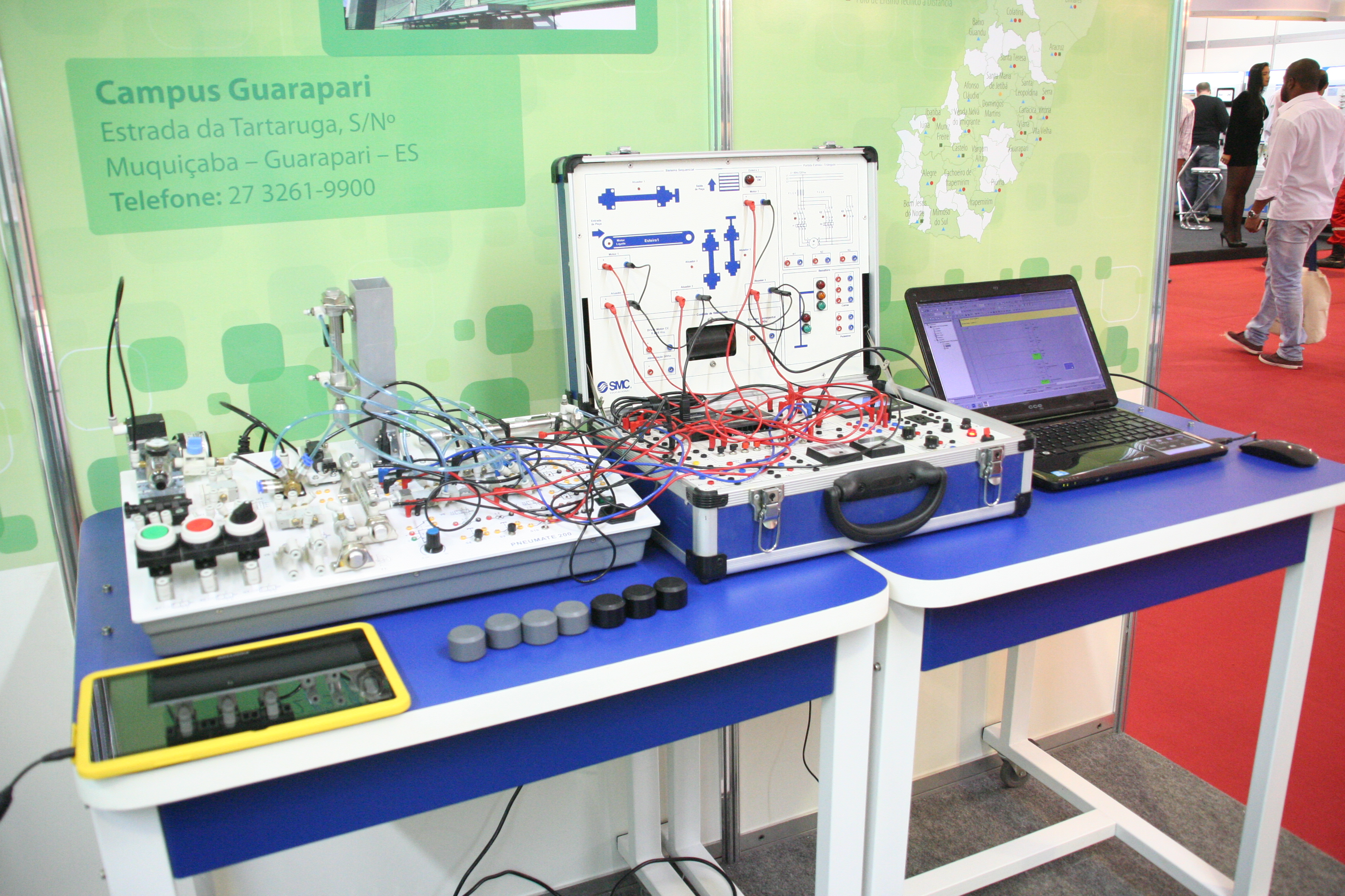 O Instituto Federal do Espírito Santo (Ifes) esteve presente na 7ª Feira de Metalmecânica, Energia e Automação (MEC SHOW), que ocorreu entre os dias 22 e 25 de Julho, no Carapina Centro de Eventos (Pavilhão de Carapina), na Serra. A MEC SHOW é a principal feira do segmento de metalmecânica e automação no Estado e reúne as principais empresas de automação, mecânica e energia, apresentando novidades e tendências para o mercado nacional. O Ifes foi representado pelos projetos aprovados em chamada interna realizada pela Pró-Reitoria de Extensão (Proex), são eles a Soluções de Inovação da Empresa Zaruc (Campus Serra), que apresenta produtos desenvolvidos pela Zaruc, empresa vinculada à Incubadora do campus; Maletas para Ensino de Automação (Campus Guarapari), plataforma compacta para transporte para atividades em outros laboratórios; e o Polo de Inovação em Petróleo e Gás e Rede de Cooperação em PD&I (Reitoria), que trata da rede de cooperação em projetos de pesquisa aplicada, extensão tecnológica e qualificação profissional.