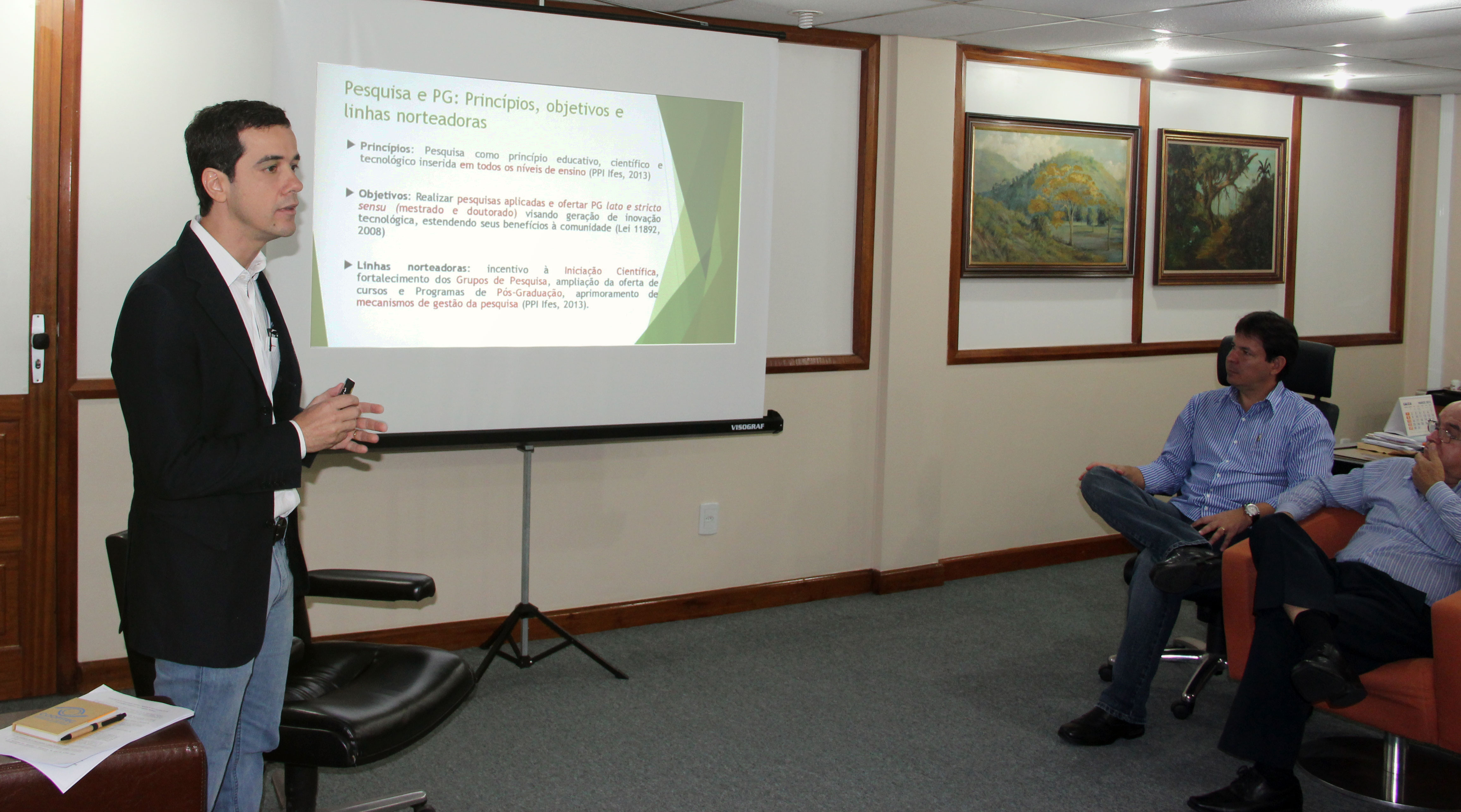Ele foi recebido pelo reitor, Denio Rebello Arantes. Também participou do encontro a equipe de pró-reitores e demais gestores da Reitoria: professor Marcio Almeida Có, pró-reitor de Pesquisa e Pós Graduação; professor Renato Tannure Rotta de Almeida, pró-reitor de Extensão; professora Araceli Nardy Ribeiro, pró-reitora de Ensino; professor Ademar Stange, pró-reitor de Desenvolvimento Institucional; professor Tadeu Pissinati Sant'Anna, assessor especial para implantação do Polo de Inovação; professor Mauro Silva Piazzarolo, diretor-executivo da Reitoria; José Aparecido Buffon, procurador do Ifes; professor Raoni Huapaya, chefe de gabinete da Reitoria; e professor Christian Mariani dos Santos, coordenador-geral da Agência de Inovação do Ifes (Agifes).