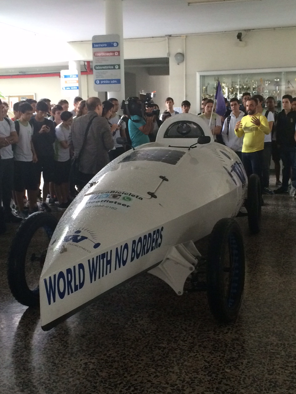 O iraniano naturalizado holandês Ebrahim Hemmatnia esteve no Campus Vitória do Instituto Federal do Espírito Santo (Ifes) na manhã desta quarta-feira (6) para conversar com os estudantes e contar sobre a viagem de volta ao mundo que ele está fazendo a bordo de um barco-bicicleta. Na invenção, o aventureiro, que é formado em Engenharia Civil e mestre em Topografia, cruzou o Oceano Atlântico. Ele saiu de Senegal, na África, e chegou ao Brasil, de onde partirá para o Peru e depois tentará chegar ao Oceano Pacífico. Sua intenção é dar a volta ao mundo pedalando e navegando e completar uma volta ao mundo em quatro anos.