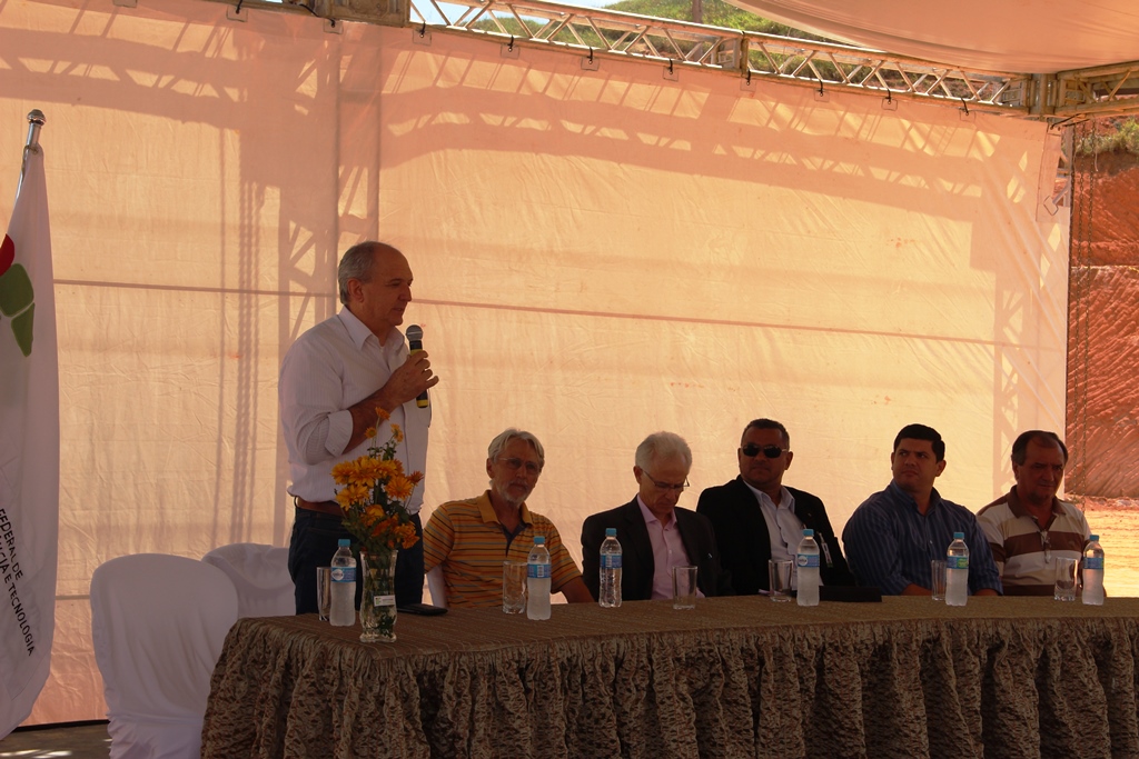 Professores, servidores técnico-administrativos, alunos e autoridades locais estiveram, no último dia 24 de agosto, na área onde será construído o Campus do Ifes em Barra de São Francisco, para a solenidade de encerramento das comemorações de aniversário e o início da segunda fase das obras.