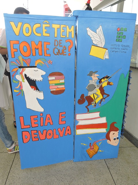 Alunos e servidores do Campus Piúma realizaram neste mês de novembro um projeto diferente, com o objetivo de incentivar a leitura: a Geladeira de Livros. Eles transformaram uma geladeira antiga em uma pequena biblioteca, que agora fica no pátio do campus. “É sempre uma necessidade reafirmar a importância da leitura, e é ainda mais essencial que esse hábito seja naturalizado, saia das salas de aula para o pátio da escola, não precise de limites de tempo para devolução dos livros, não tenha obstáculos”, afirma a professora de Português Sarah Vervloet Soares.