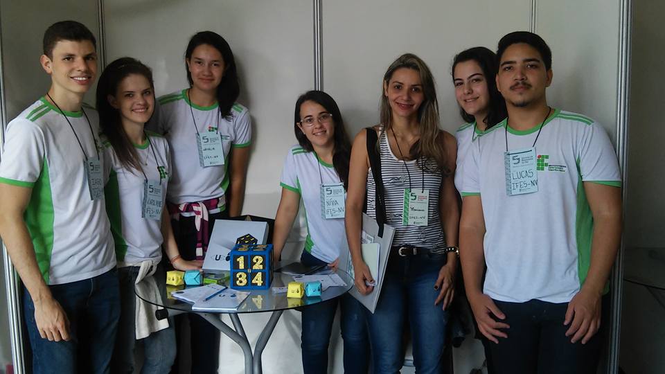 Um trabalho de cinco alunos do Campus Nova Venécia foi destaque na Feira de Matemática, realizada dentro da programação da 5º Semana de Matemática do Ifes, que aconteceu no Campus Vitória entre 18 e 21 de maio. Aliny Pansieri Grillo, Eric Rabelo, Gabriel Balbino dos Santos, Heberly Coutinho da Silva, Triza Ramos Vieira e Mayara de Oliveira Nascimento, que estão no 3º ano do Técnico Integrado em Edificações, desenvolveram o “Jogo das 3 Pistas”.