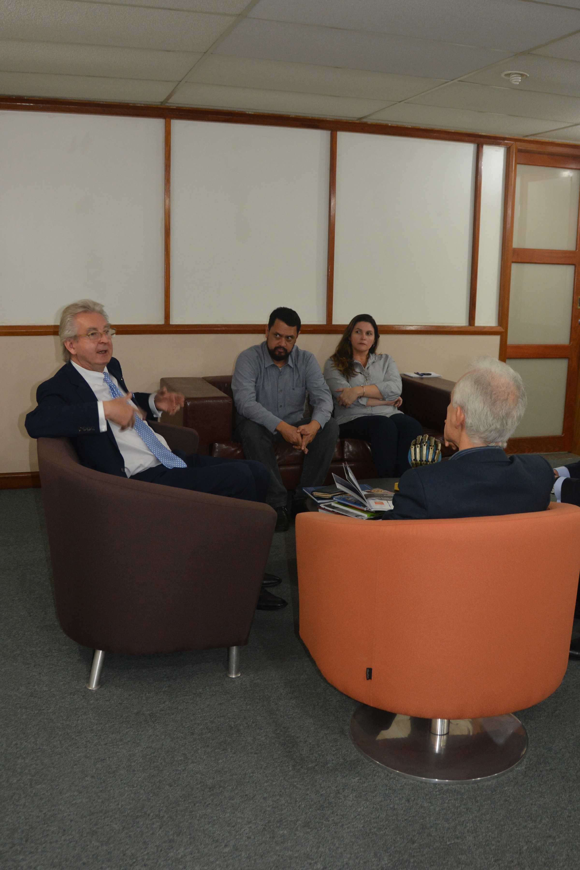 O reitor do Instituto Federal do Espírito Santo (Ifes), Denio Rebello Arantes, recebeu no dia 28 de junho a visita de dois diretores executivos da universidade alemã Steinbeis-Sibe: Weiner Faix, CEO da universidade na Alemanha; e Peter Dostler, diretor da Steinbeis-Sibe do Brasil. Eles estiveram na Reitoria para conversar sobre a possibilidade de parcerias e sobre o congresso internacional da Federação dos Colleges e Politécnicos (WFCP, na sigla em inglês).