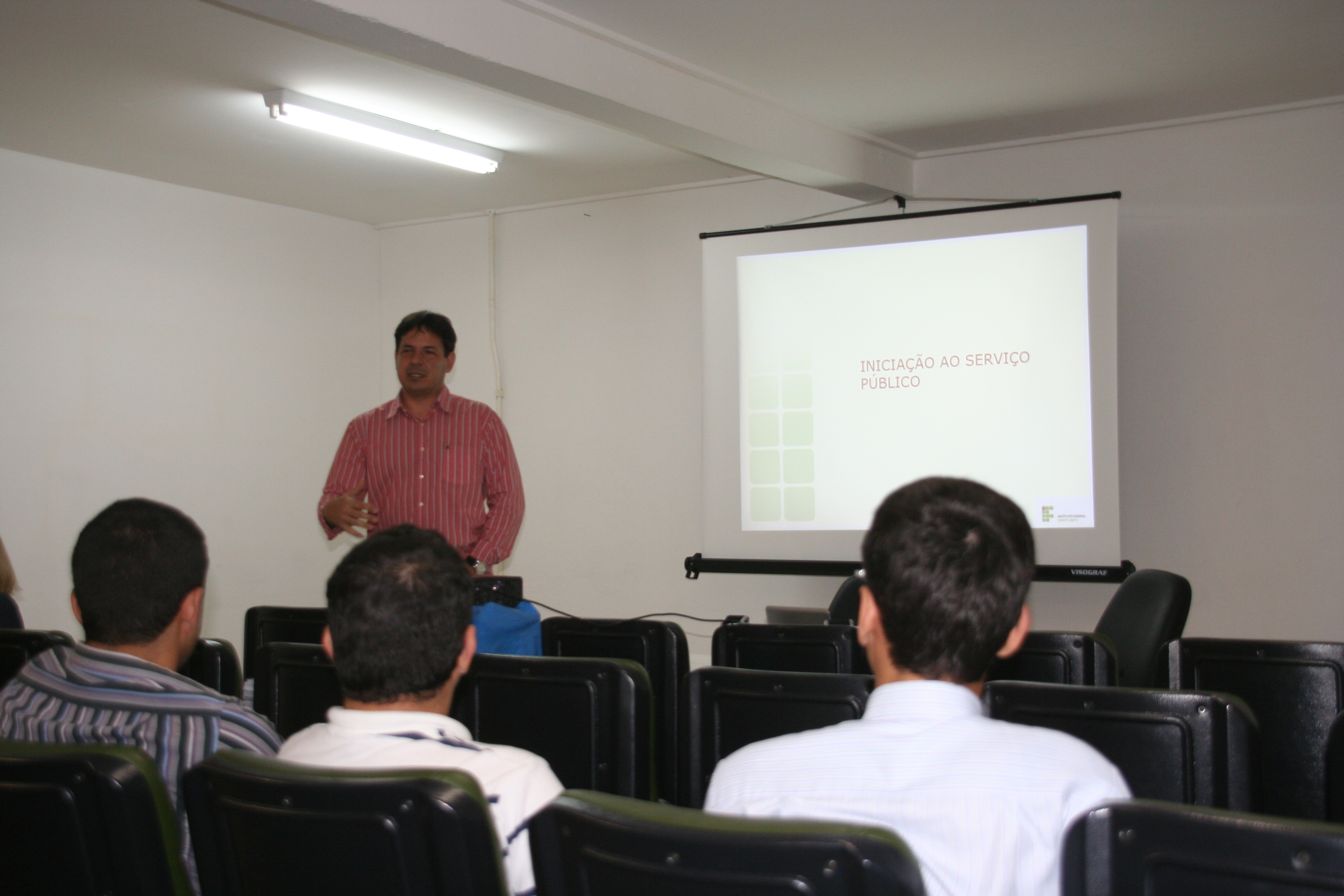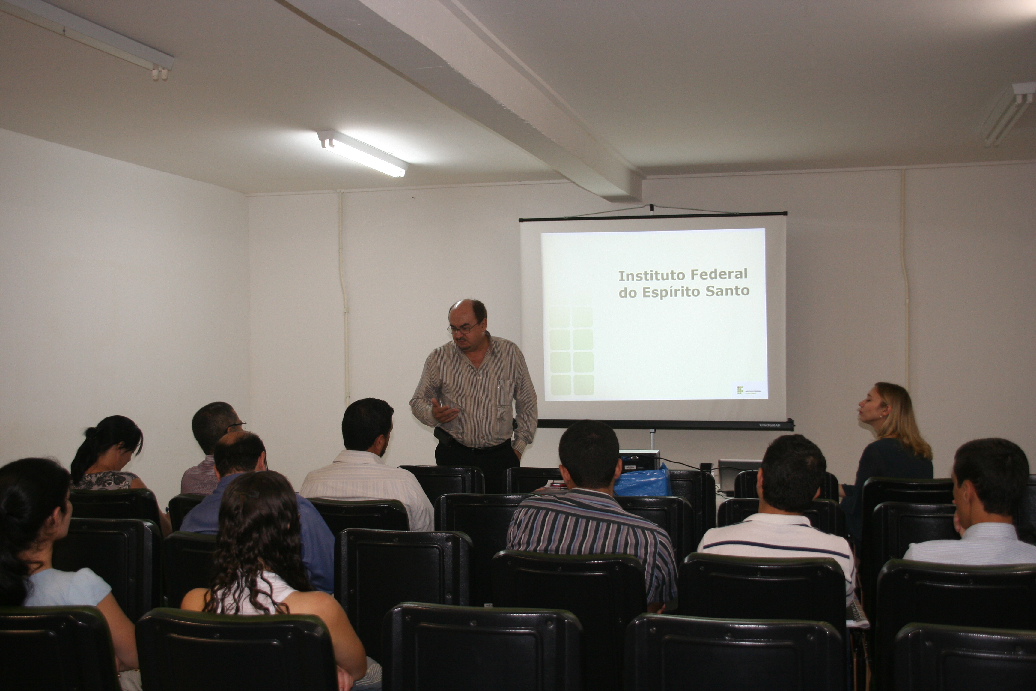 A diretora de Gestão de Pessoas do Ifes, Danusa Simon Robers, deu as boas-vindas e apresentou os pró-reitores e diretores presentes. O pró-reitor de Desenvolvimento Institucional do Ifes, Ademar Stange, falou um pouco sobre a instituição e sobre sua experiência como servidor. Ele destacou a importância do comprometimento dos servidores com o Ifes e sua história. Participaram da apresentação também os pró-reitores de Administração e Orçamento, Lezi Ferreira; Ensino, Araceli Ribeiro; Extensão, Renato Tannure; e de Pesquisa e Pós-Graduação, Márcio Có. Cada pró-reitor expôs as atividades desenvolvidas por sua respectiva pró-reitoria dentro da estrutura organizacional do Ifes.