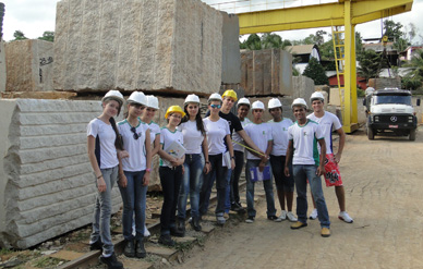 Os estudantes tiveram oportunidade de conhecer vários tipos de blocos de rochas comercializados, verificar os blocos que foram lavrados utilizando o fio diamantado, perfuração com brocas e utilização de argamassa. Eles também aprenderam a medir e a classificar os blocos comercialmente.