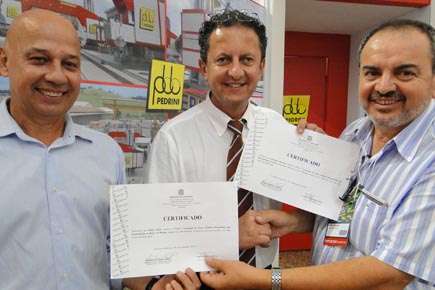 Durante o evento, o professor Gilberto Freire Rangel, do campus Cachoeiro, entregou aos representantes da empresa italiana Pedrini S. P. A., Alberto Fusco e Alberto Vavassori, os certificados pelo curso que ministraram no campus em dezembro de 2010. O curso, intitulado “Nova tecnologia de teares multifios diamantados para cortes de blocos de rochas”, foi direcionado aos alunos do curso Técnico em Mineração e do bacharelado em Engenharia de Minas, do campus Cachoeiro.