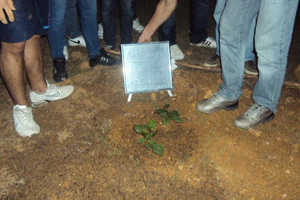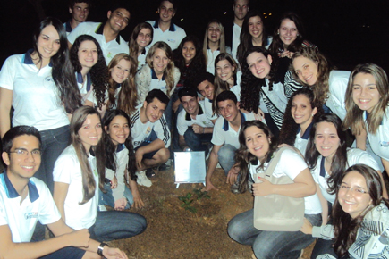 Ao final da programação, a turma de formandos realizou o plantio de uma árvore. Uma placa com o nome da espécie da árvore e dos alunos foi fixada ao lado.