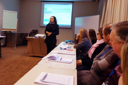 A coordenadora fez uma apresentação sobre a experiência com os Cursos de Desenvolvimento de Servidores – CDS no Instituto.