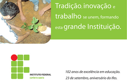 Confira a mensagem do Instituto Federal do Espírito Santo sobre o aniversário de 102 anos.