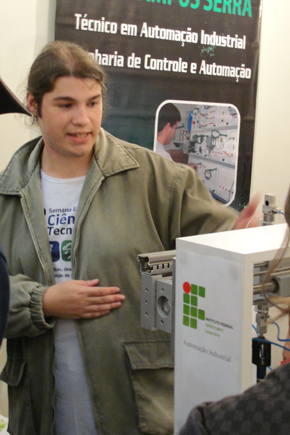Sob a orientação do professor Giovani Zanetti, os alunos apresentam no evento o “Selecionador Didático de Peças Controlado por CLP WEG”. O dispositivo, que simula um processo industrial de seleção automatizada de peças, objetiva permitir que estudantes atuem em um processo de automação que se aproxima da realidade industrial.