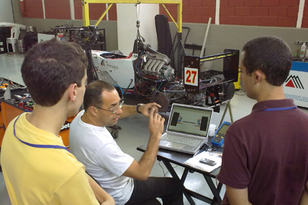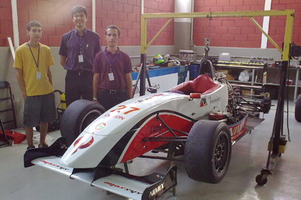 Os estudantes conheceram a oficina de uma equipe de competição automobilística patrocinada pela Minipa.
