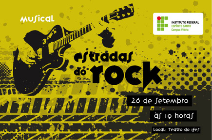Nesta quarta-feira (26), o campus Vitória realizará o evento musical “Estradas do Rock – de Elvis a Legião”, a partir das 19 horas, no Teatro do campus. O evento é aberto ao público e a entrada é 1Kg de alimento não perecível, que deverá ser trocado pelo ingresso, previamente, no Grêmio Rui Barbosa (durante os três turnos). O espetáculo mostrará as transformações e as vertentes do rock desde a década de 1950 até os anos 1990.
