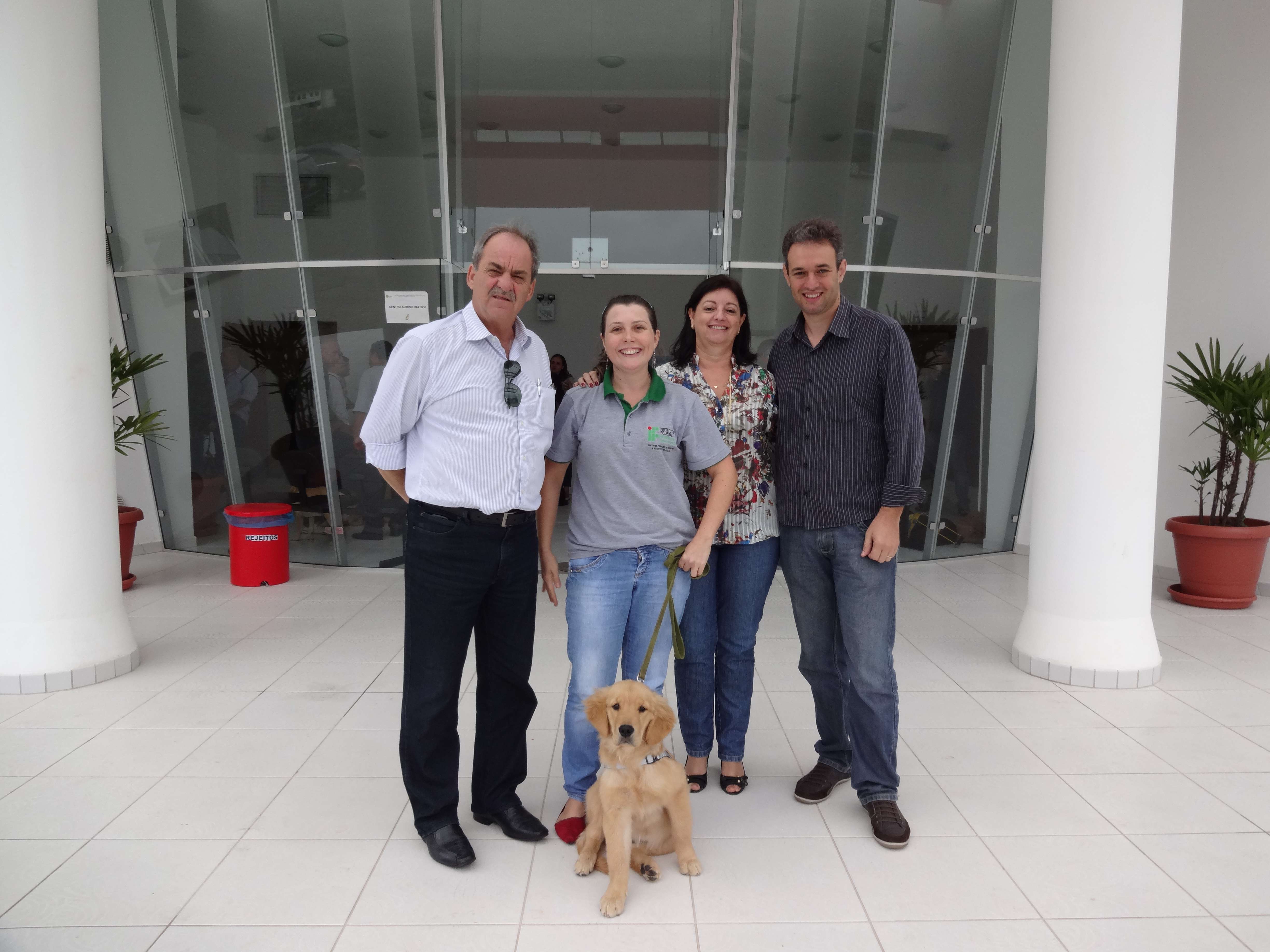 A diretora-geral do campus de Alegre, Maria Valdete Santos Tannure, o diretor de Administração, Romulo Matos de Moraes, e o professor Carlos Humberto Sanson Moulin realizaram, no dia 16 de maio, visita ao campus Camboriú do Instituto Federal Catarinense - IFC. Eles participaram de uma reunião conjunta com os representantes dos Centros de Formação de Treinadores e Instrutores de Cães-Guia, dentre eles a servidora Maria Aparecida Zaché, representante do Instituto Federal do Espírito Santo - Ifes no projeto.