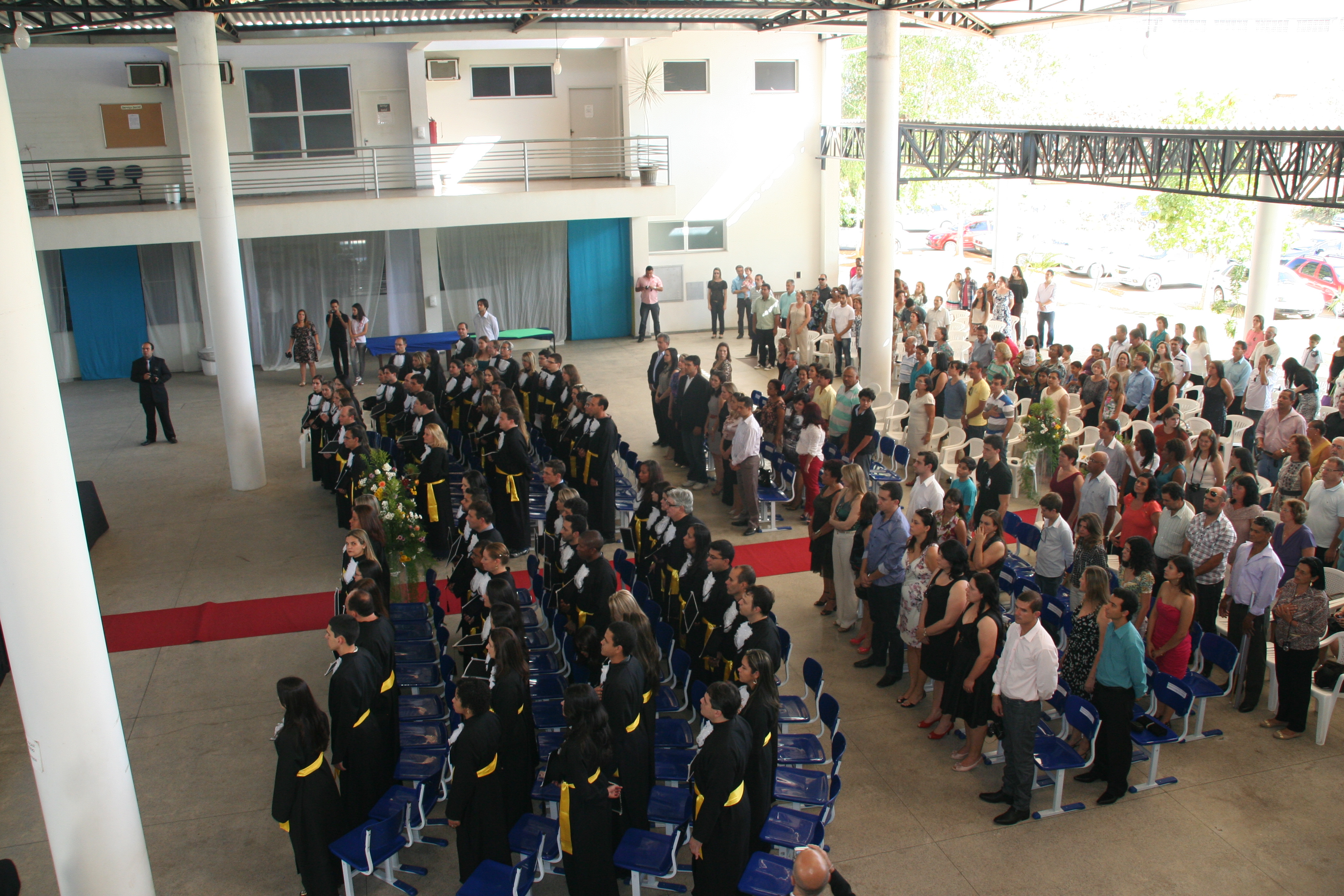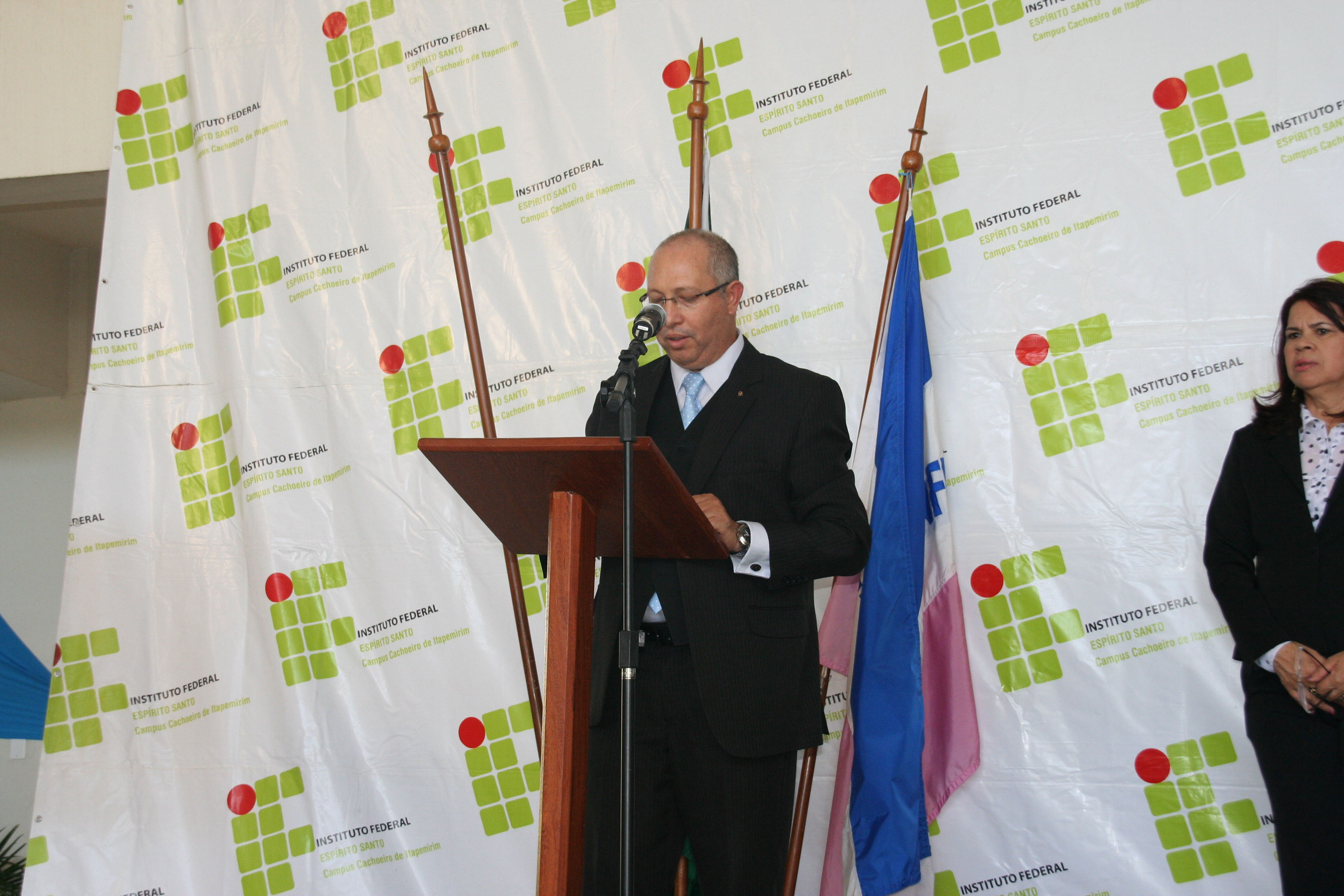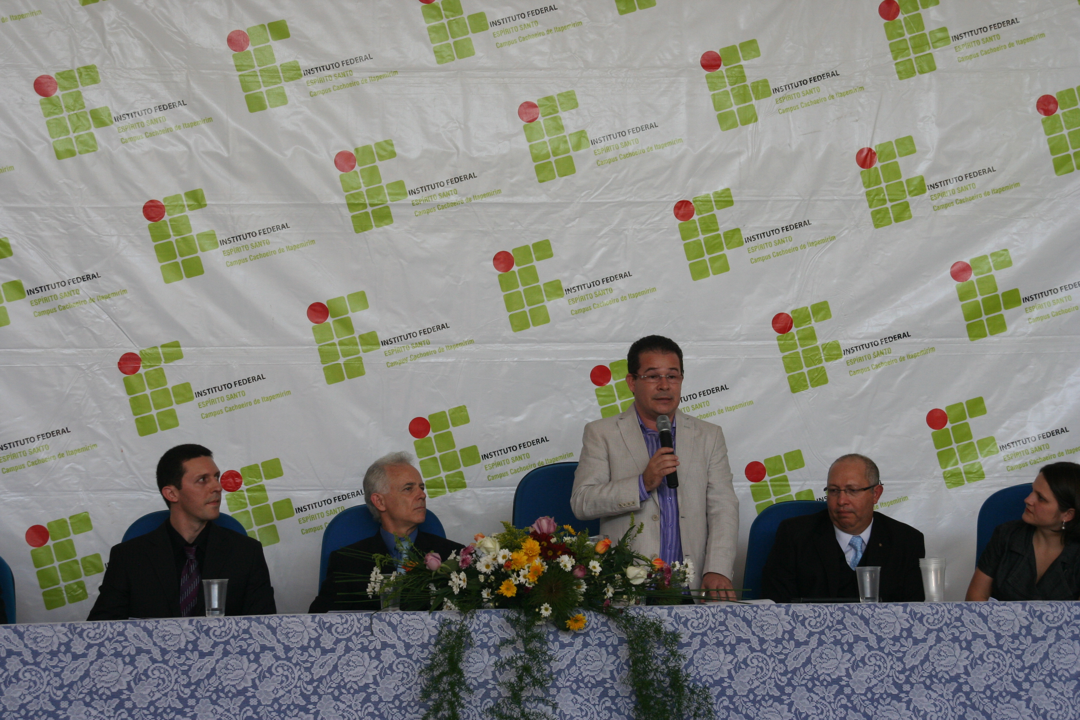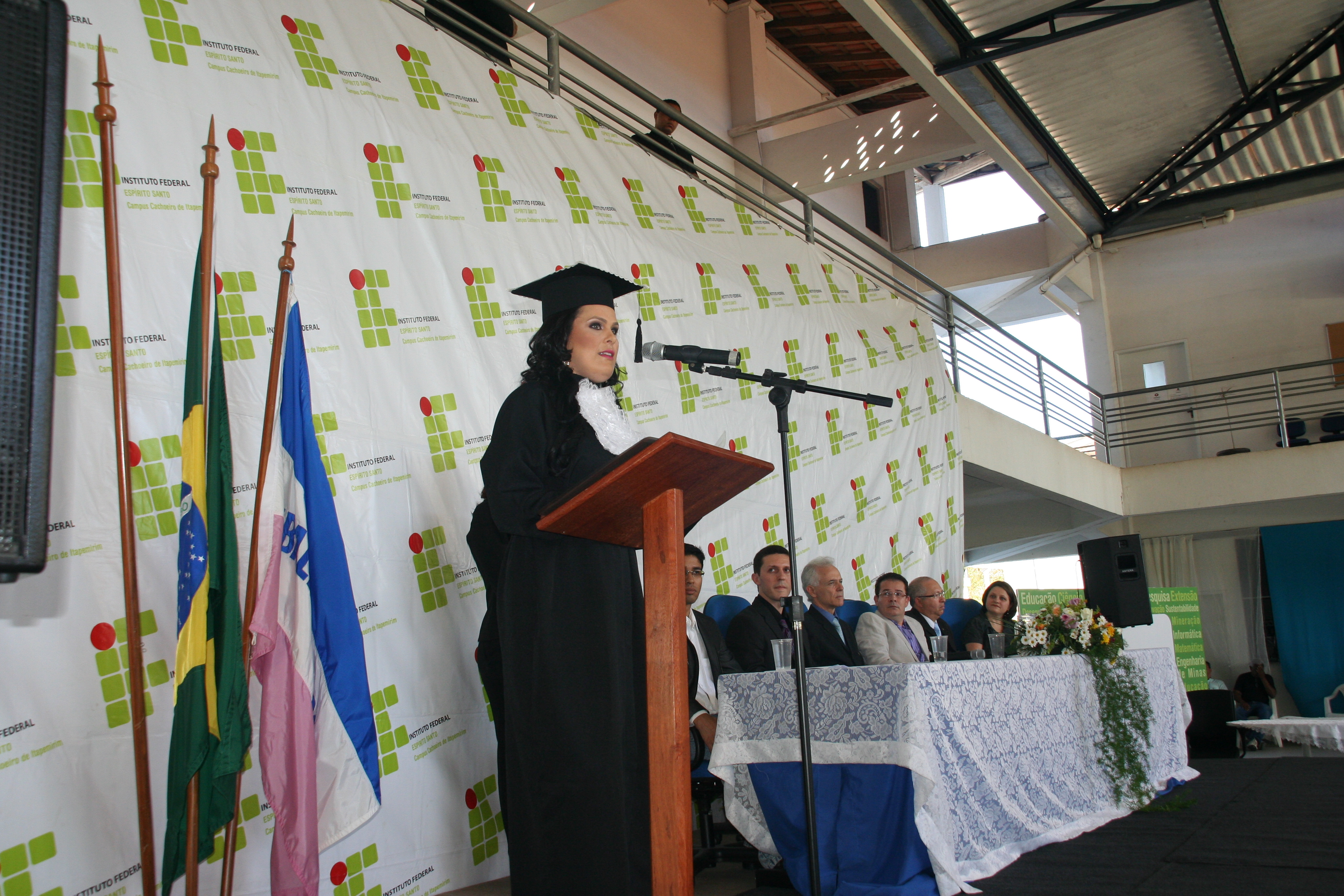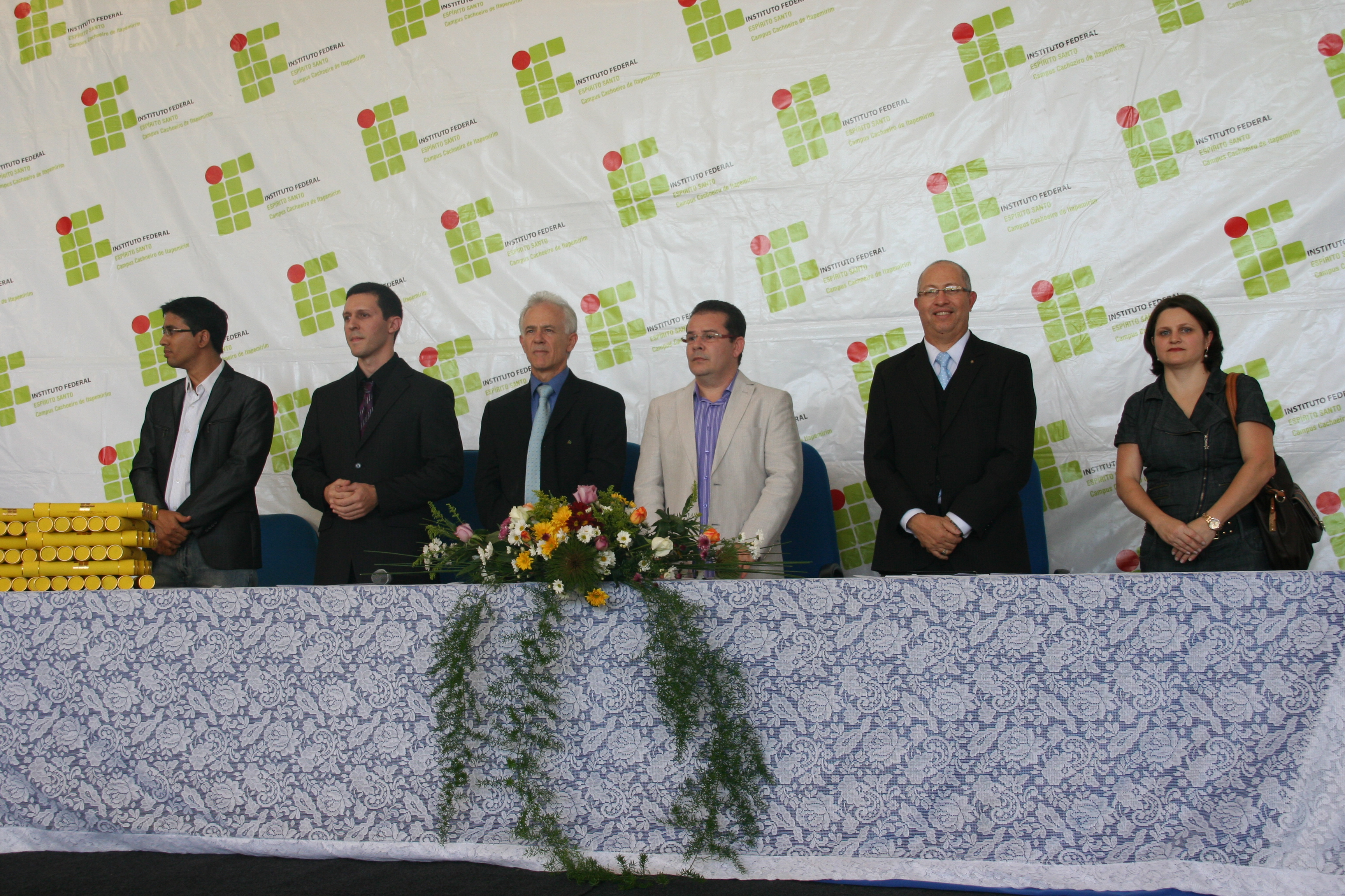A mesa de honra foi constituída pelo reitor do Instituto Federal do Espírito Santo – Ifes, Denio Rebello Arantes; pelo professor Jorge Gualandi, representando o diretor-geral do campus Cachoeiro, Carlos Cezar Bettero; pela diretora de Educação a Distância do Ifes, Yvina Baldo; pelo coordenador do curso, Rafael Vargas Mesquita dos Santos; além do paraninfo Jocimar Fernandes e do patrono Ubiratan Roberte Cardoso Passos.