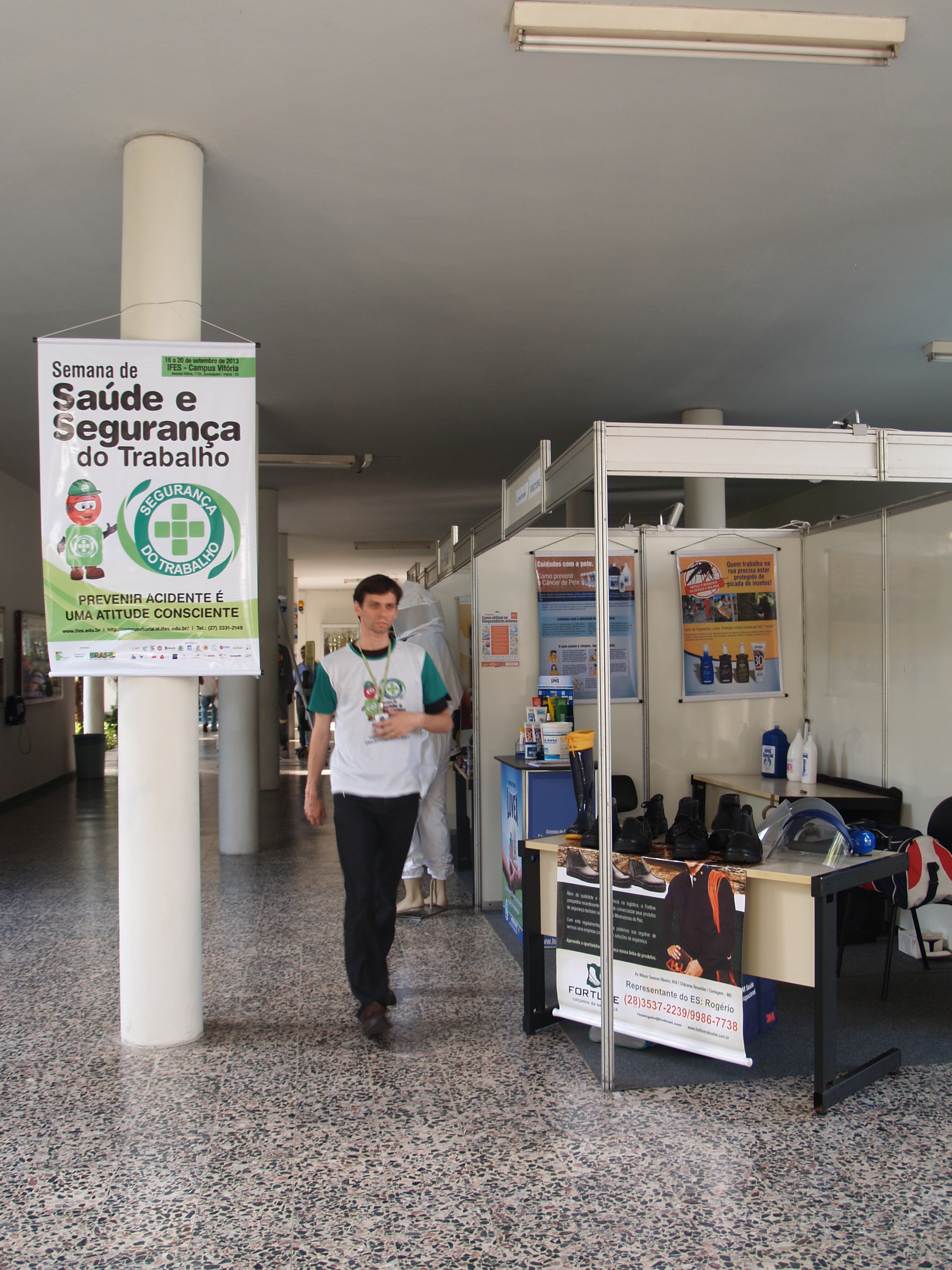 No pátio do campus, foram montados estandes do Corpo de Bombeiros Militar, empresas de equipamentos de segurança, Prefeitura de Vitória, Instituto Nacional de Seguridade Social (INSS), publicações especializadas na área, entre outros. Eles funcionarão das 15h às 20h até a quinta-feira.