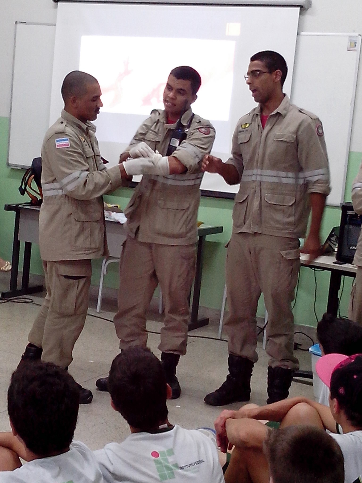 Eles participaram de palestras, realizadas pelo Corpo de Bombeiros, abordando conhecimentos básicos sobre prevenção de acidentes e técnicas de primeiros socorros.