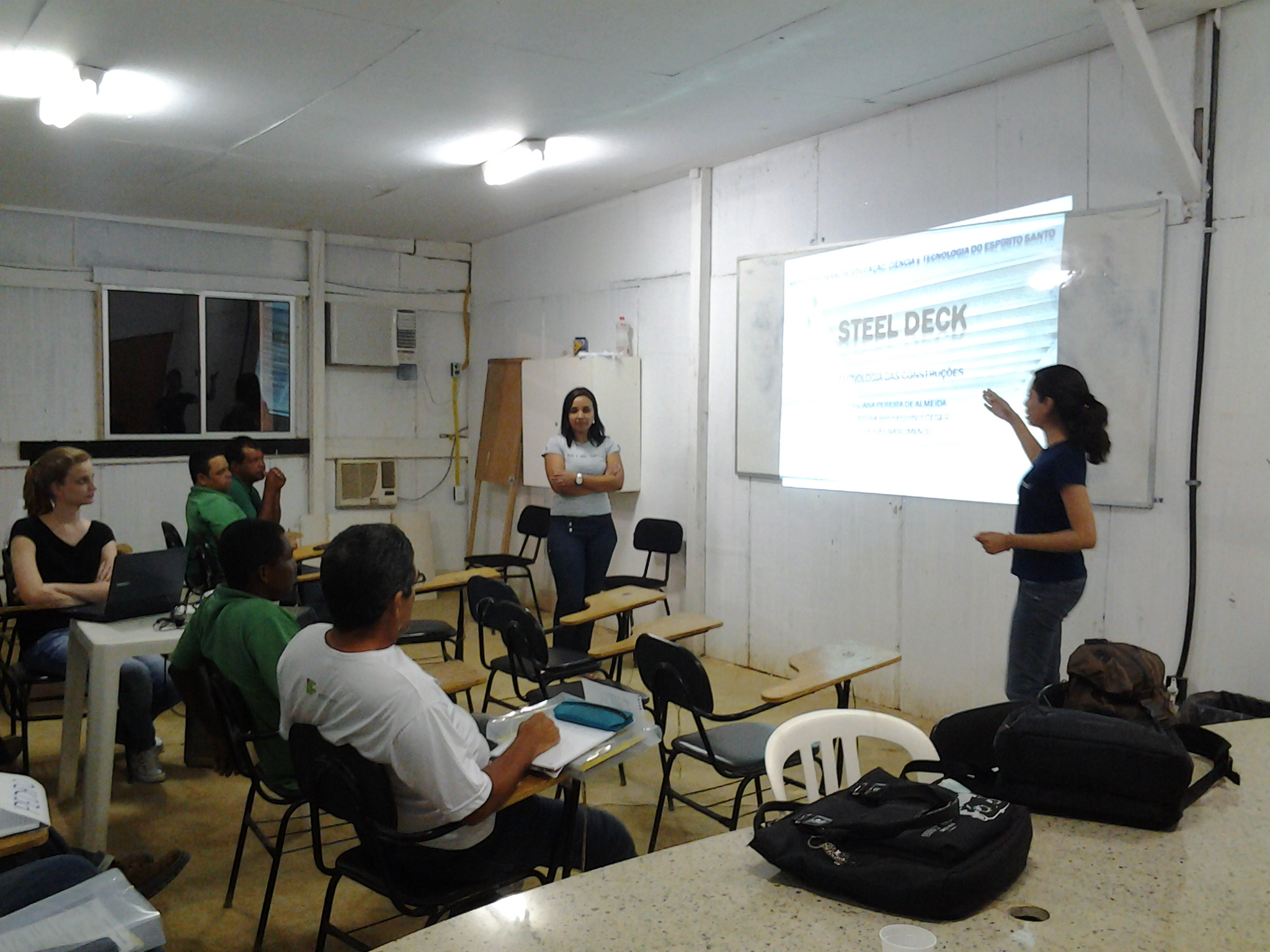 Doze alunos do curso de Engenharia Sanitária e Ambiental, do campus Vitória, realizaram apresentações de trabalhos para mestres de obras como parte das atividades da disciplina de Tecnologia das Construções. As apresentações aconteceram no mês de março no canteiro de uma das obras da construtura Morar.