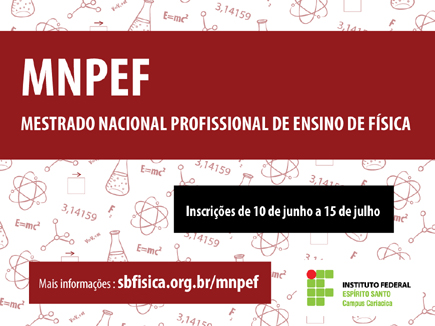 O Mestrado Profissional em Ensino de Física, ofertado pelo Instituto Federal do Espírito Santo (Ifes) no campus Cariacica, recebe inscrições até 15 de julho. São 15 vagas, todas com bolsa, para início das aulas no segundo semestre letivo de 2014. O mestrado foi elaborado e articulado pela Sociedade Brasileira de Física (SBF) e tem como objetivo capacitar professores quanto ao domínio de conteúdos de Física e de técnicas atuais de ensino.