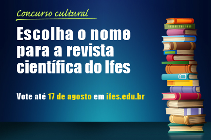 Está aberta a votação para a escolha do nome da nova revista científica do Instituto Federal do Espírito Santo (Ifes). A comunidade acadêmica terá até o dia 17 para escolher um dos três nomes selecionados: “Conexões Ifes”; “Ifes Ciência”; e “Saberes em Foco”. As sugestões foram enviadas por servidores e alunos, participantes do concurso cultural que vai dar R$ 500 em livros para o autor do nome vencedor.