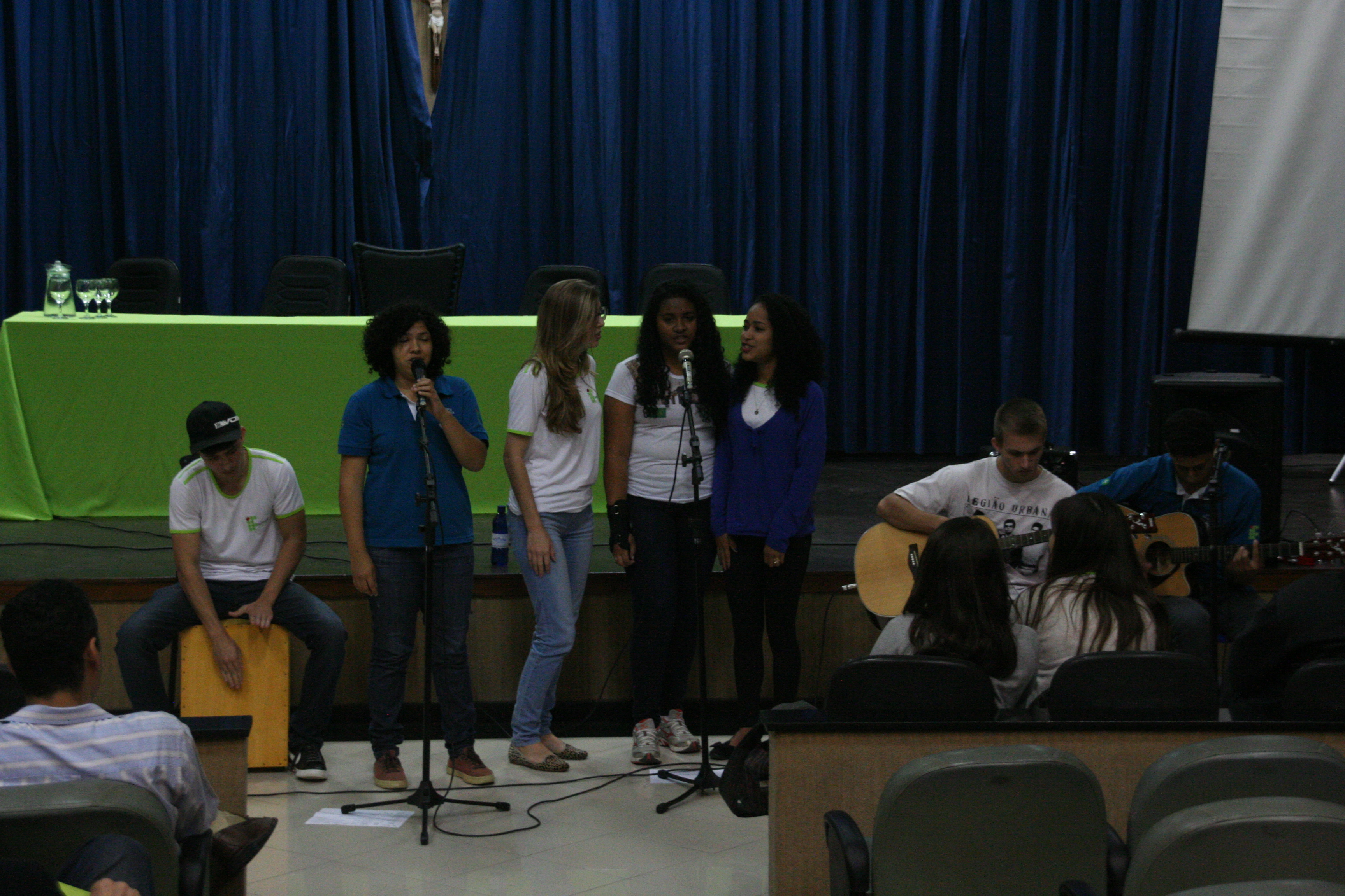 Em seguida, um grupo de alunos do Campus Aracruz, do projeto Recreio Cultural, fez uma apresentação para os presentes, antes do início das palestras. Eles ensaiam semanalmente e tocam vários estilos. No seminário, apresentaram canções da MPB, com um grupo de cantoras, baixo, violões e percussão.