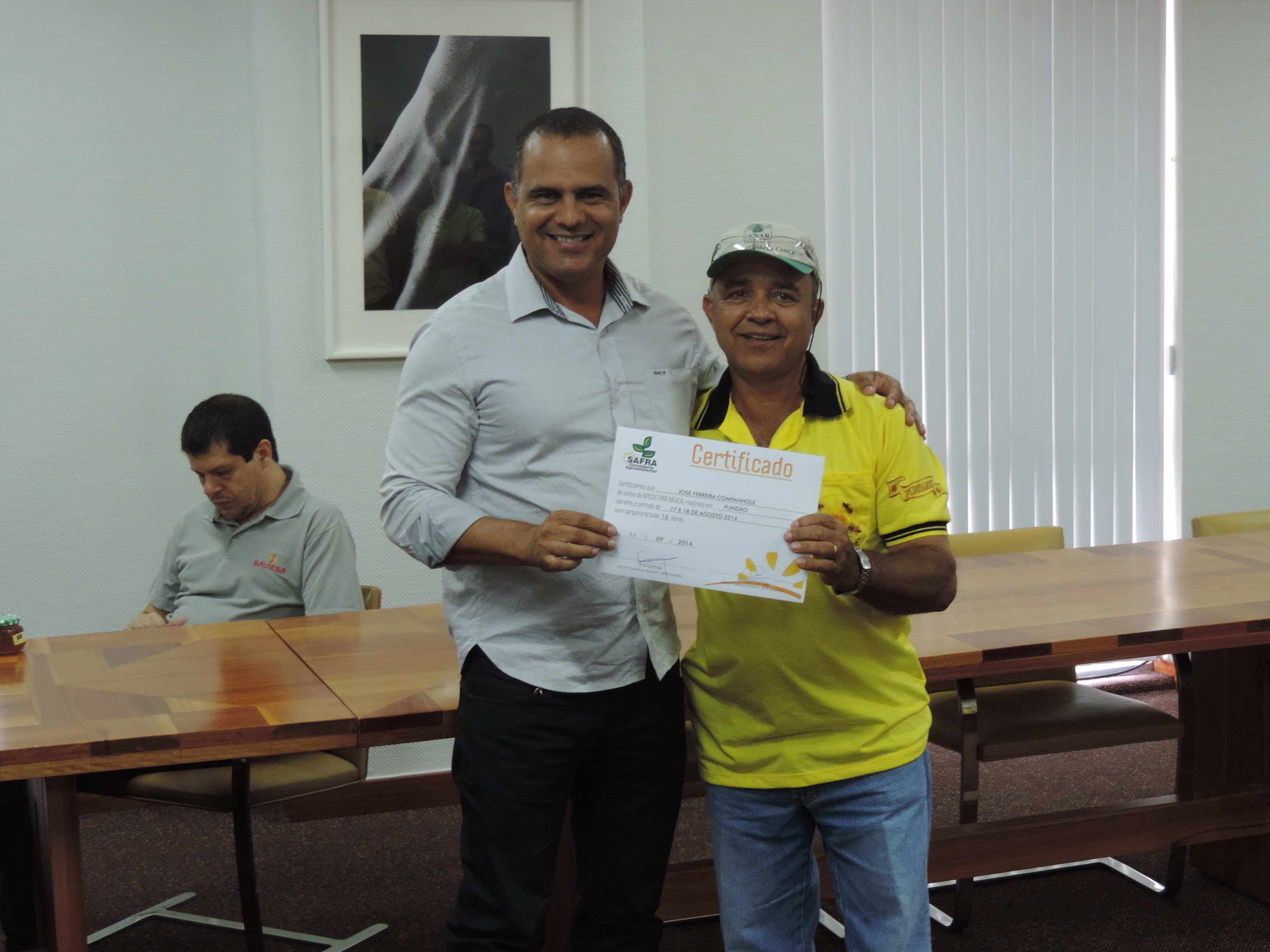 Representantes do Instituto Federal do Espírito Santo (Ifes), do Instituto Saviesa e da Fibria estiveram reunidos na última quarta-feira (15) para assinar o acordo de cooperação técnica do projeto Apisfrut e receber Vitarque Lucas Paes Coêlho, coordenador de programas sub-regionais da Secretaria de Desenvolvimento Regional, do Ministério da Integração Nacional. O Apisfrut – projeto de que visa incentivar a apicultura e a fruticultura, promovendo a inclusão produtiva e o desenvolvimento social – faz parte das Rotas de Integração Nacional, proposta pelo ministério.
