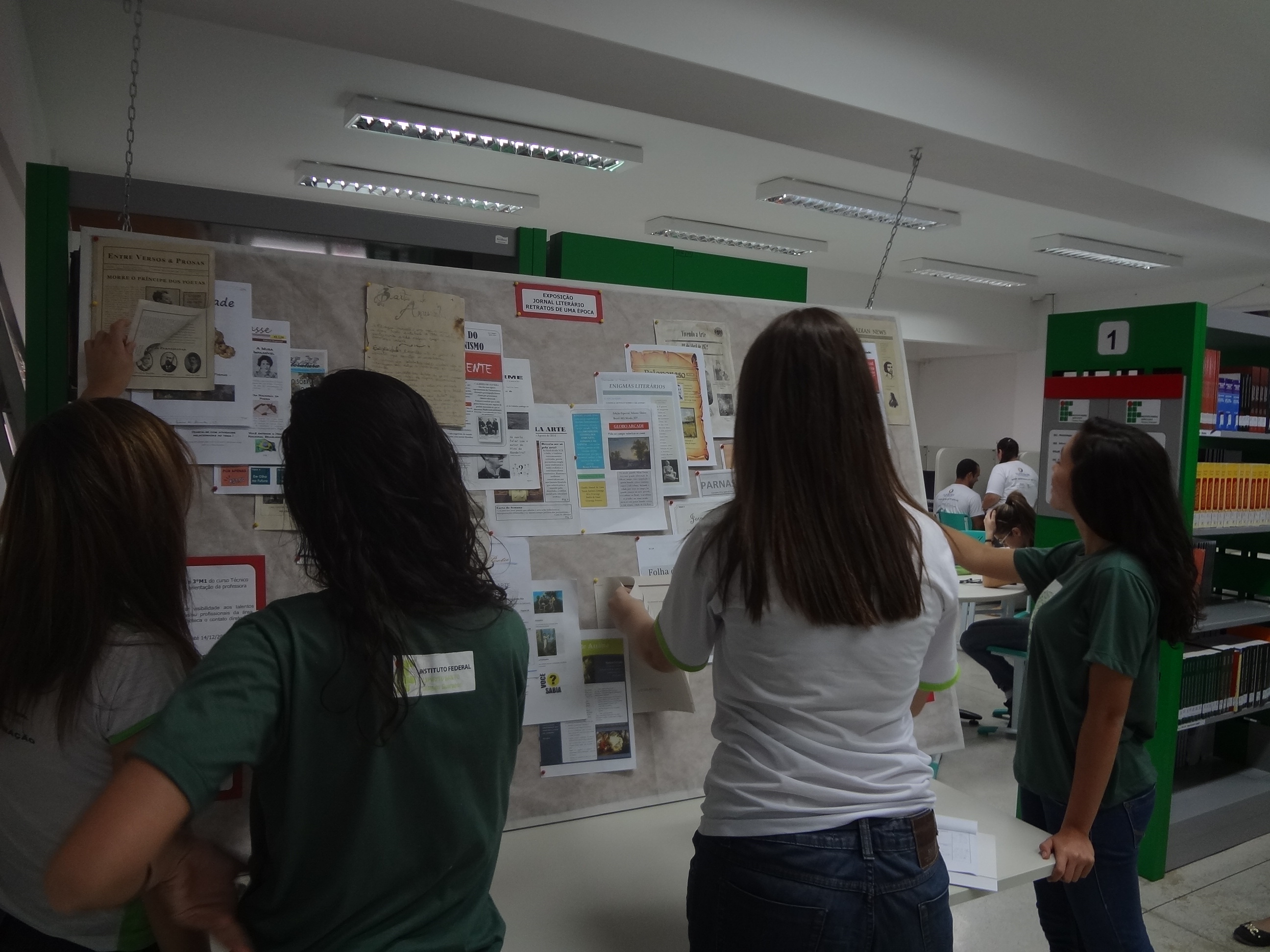 A Biblioteca do Campus Guarapari recebe em seu espaço cultural a exposição "Jornal Literário: retratos de uma época". São 33 jornais produzidos pelos alunos do Curso Técnico em Administração Integrado ao Ensino Médio utilizando técnicas de envelhecimento com borra de café. A visitação vai até 14 de dezembro, das 8 às 21 horas.
