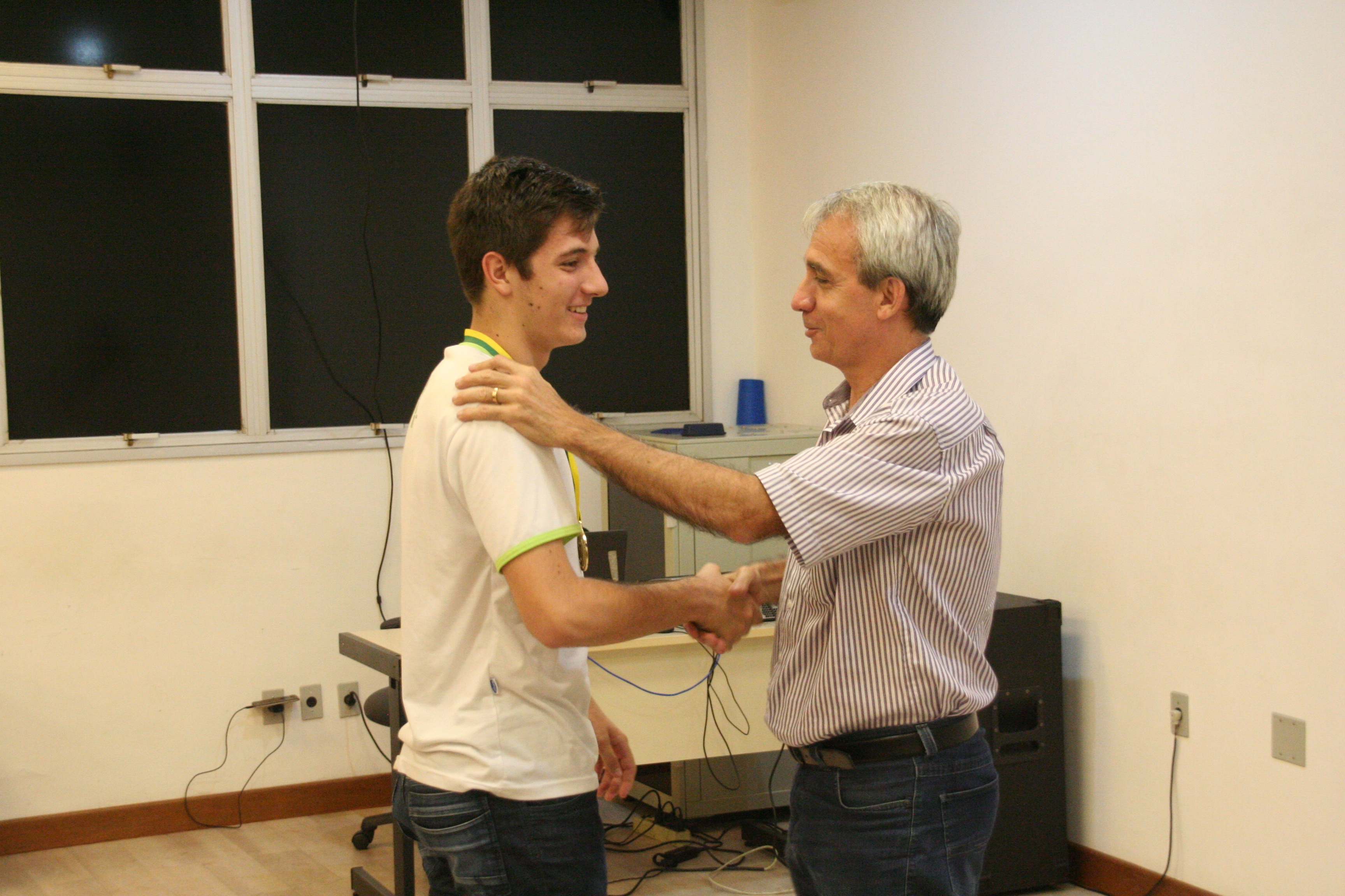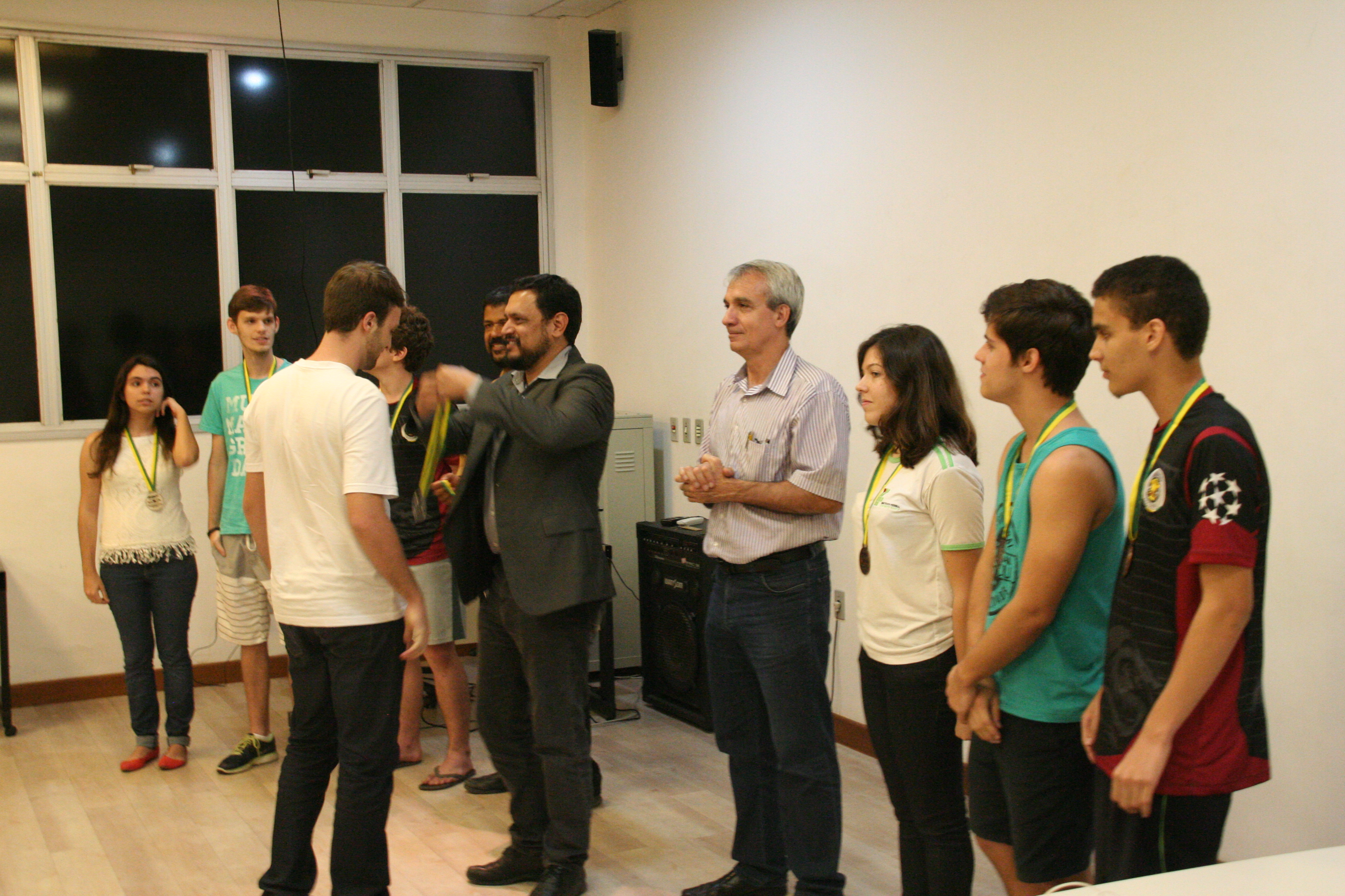 Os alunos do Campus Vitória que se destacaram na Olimpíada Brasileira de Física (OBF) e na Olimpíada Brasileira de Física das Escolas Públicas (OBFEP) de 2014 receberam medalhas pelo seu desempenho, na última quinta-feira (17). A cerimônia de premiação aconteceu no miniauditório do Campus Vitória e foi presidida pela professora Aline Costalonga Gama, coordenadora regional das duas olimpíadas.
