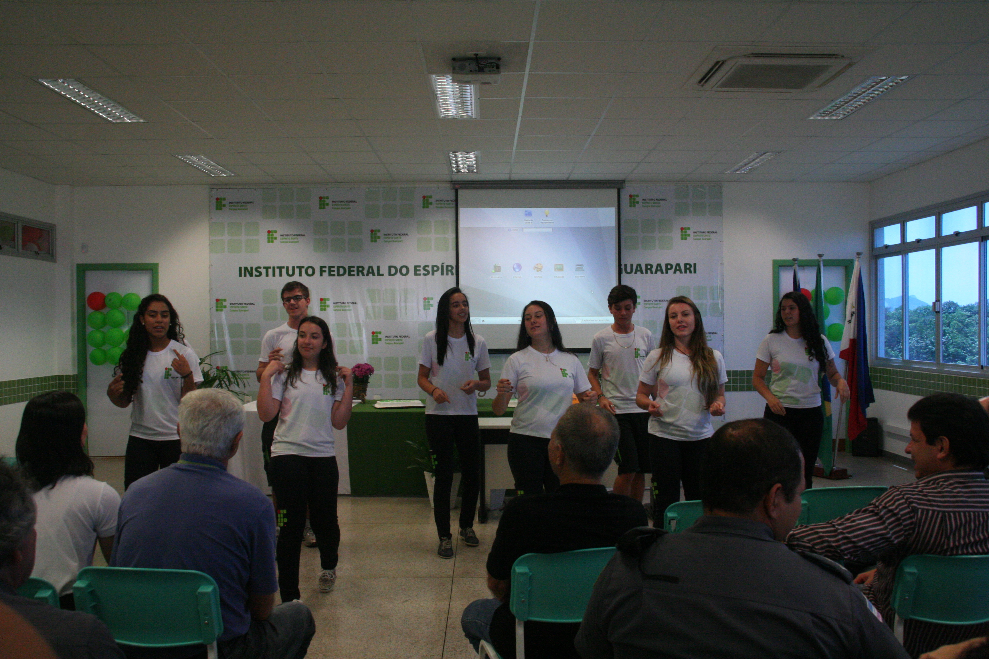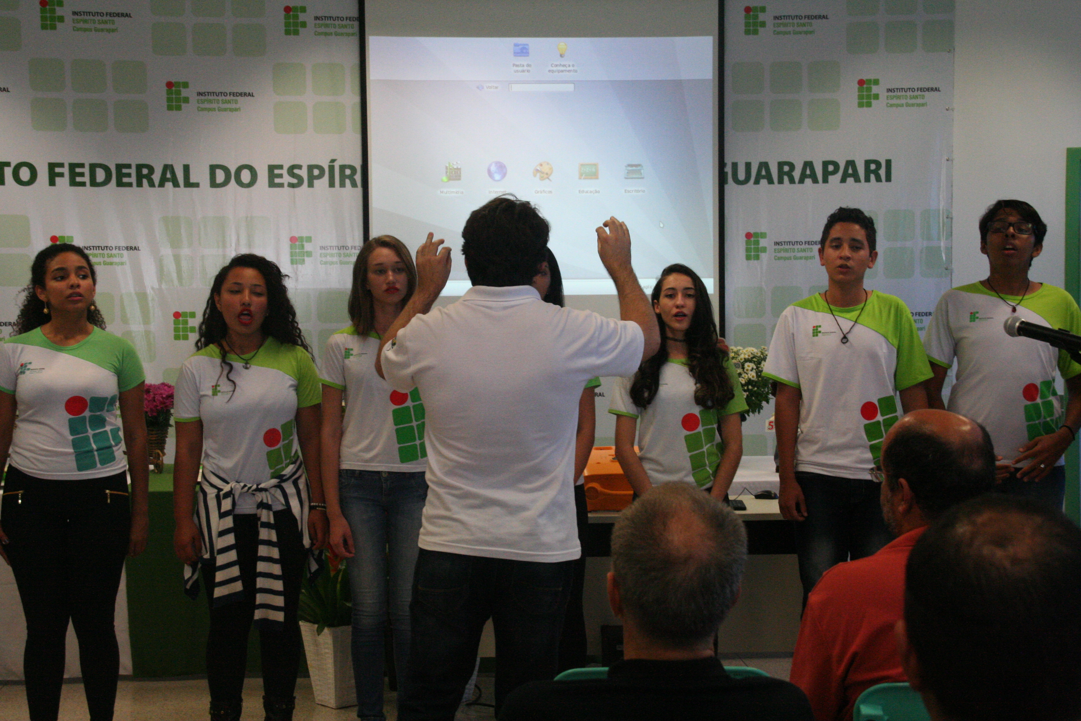 Finalizando as apresentações culturais, o Campus Linhares apresentou o seu Coral Jovem, formado por alunos do campus. Eles apresentaram algumas músicas clássicas. Após as apresentações, os participantes da cerimônia cantaram parabéns e partilharam bolo e refrigerante.