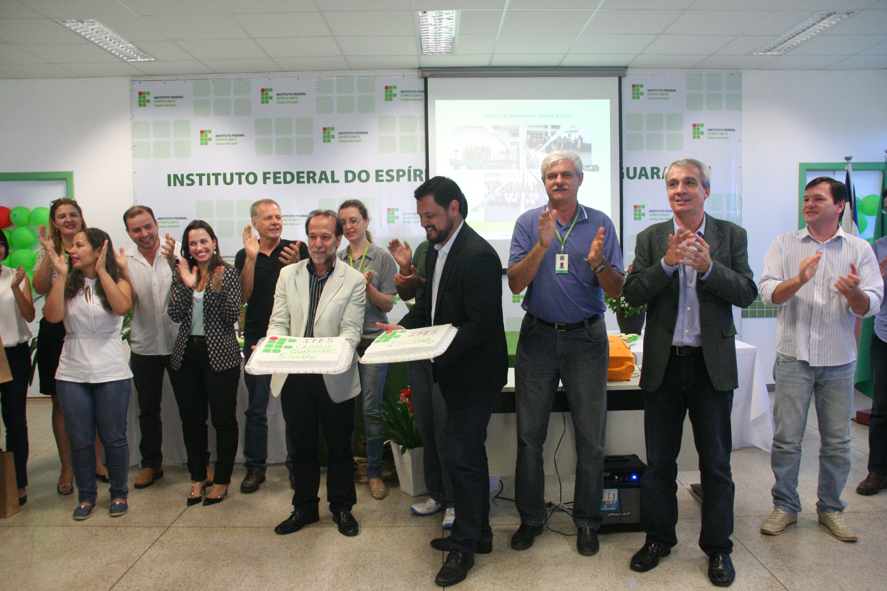 Servidores e alunos do Instituto Federal do Espírito Santo (Ifes) comemoraram os 106 anos da instituição em uma cerimônia repleta de apresentações culturais. O evento aconteceu nesta quarta-feira (23) no Campus Guarapari, como parte da programação da 10ª edição da Jornada de Iniciação Científica do Ifes. Cerca de 200 pessoas estiveram presentes, entre servidores, alunos e representantes da comunidade.