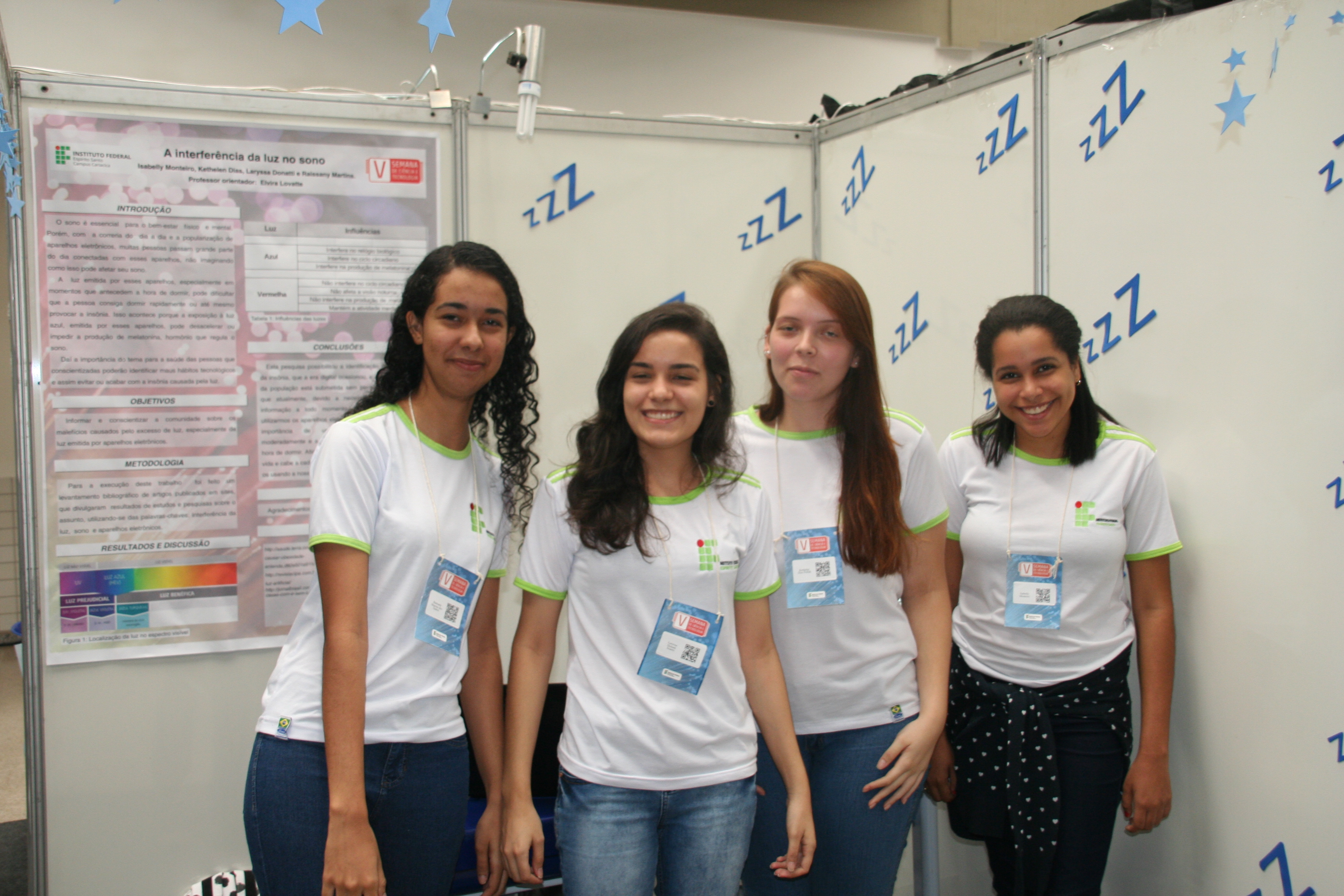 Outro projeto, das estudantes Isabelly Monteiro, Kethelen Dias, Laryssa Donnati e Raissany Martins, estudaram a influência da luz emitidas pelos aparelhos tecnológicos no sono das pessoas. A conclusão foi que a luz azul de tablets, celulares e notebooks influencia a produção da melatonina, hormônio responsável pelo sono. Por isso, é indicado que as pessoas parem de utilizar esses aparelhos três horas antes de dormir. Outra solução apontada pelas estudantes é baixar aplicativos que tornam a luz dos aparelhos alaranjadas (como o Twilight).