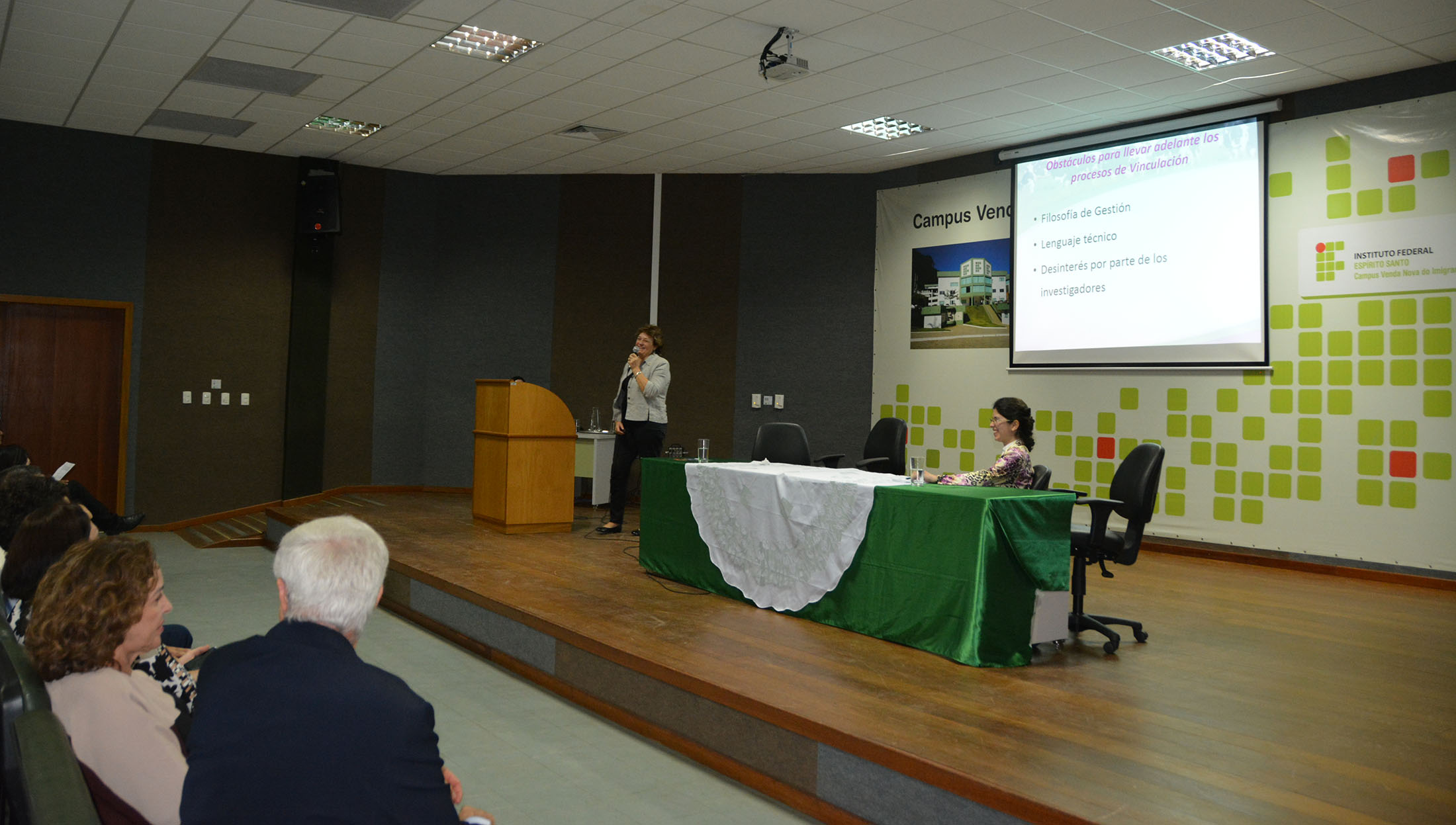 As palestras contaram com o apoio de tradução consecutiva realizada pela Assessora de Relações Internacionais do Ifes, Verônica Rangel Barreto.