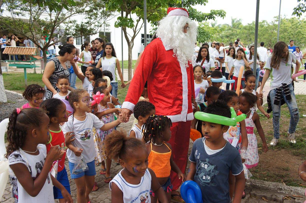 Na última quarta-feira (30), 121 crianças da Creche São Francisco de Assis visitaram o Campus São Mateus e receberam os donativos arrecadados pelo projeto “Criança Feliz”. A iniciativa é dos estudantes do 4º ano do curso integrado em Eletrotécnica, e nesta edição contou com a colaboração dos alunos do curso de Engenharia Mecânica.