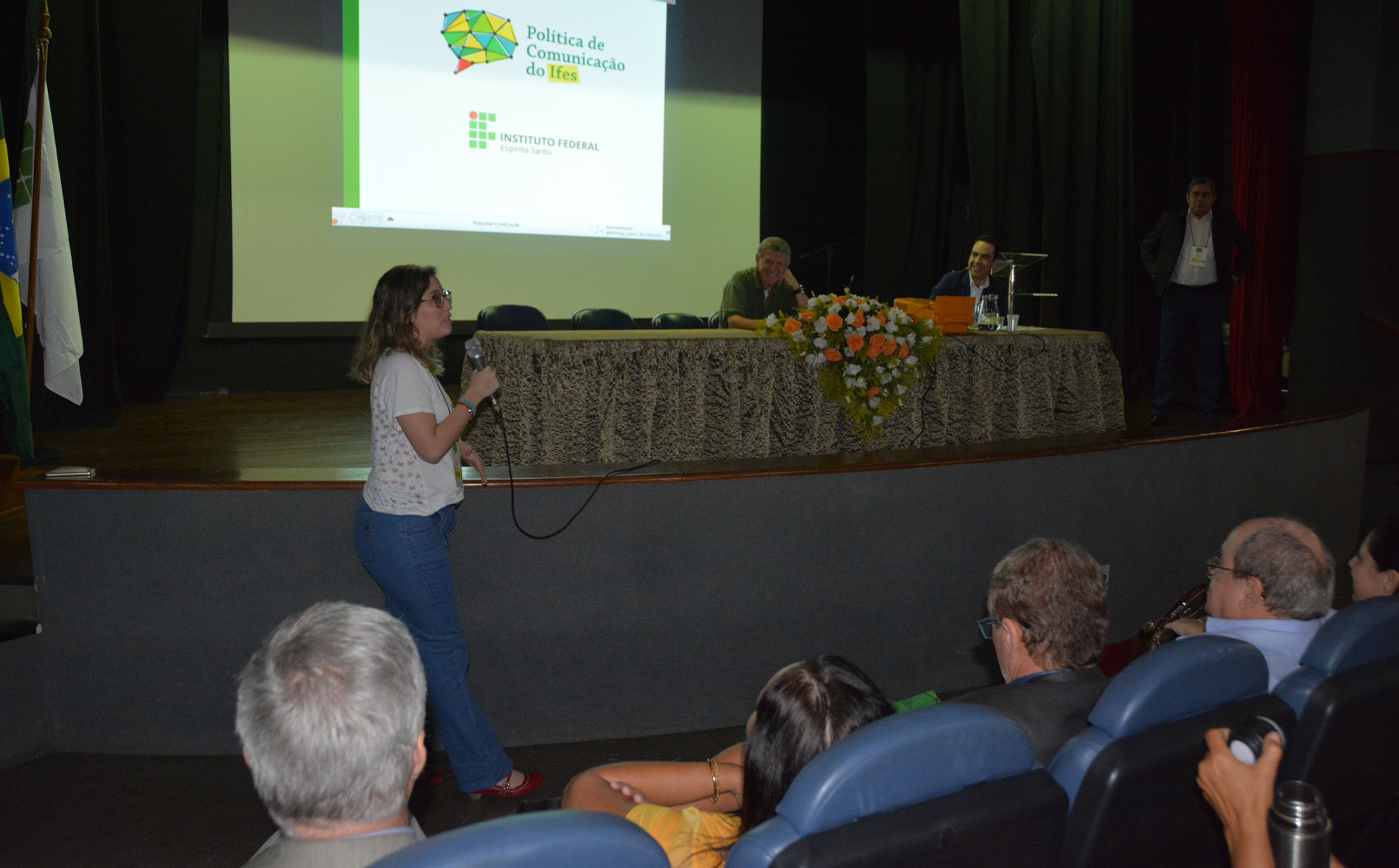 Na última sexta-feira (9) aconteceu, no Teatro do Campus Vitória, o lançamento da Política de Comunicação do Instituto Federal do Espírito Santo (Ifes). O documento foi construído com base em reuniões realizadas entre os meses de fevereiro e junho, que contaram com a participação de representantes de docentes, técnicos administrativos e estudantes, dos diversos campi e de vários cursos ofertados pela instituição. Também se pautou em pesquisas. O lançamento teve a presença do reitor Denio Rebello Arantes, dos membros do Conselho Superior, dos diretores de campus, diretores sistêmicos e líderes de Comunicação dos campi.