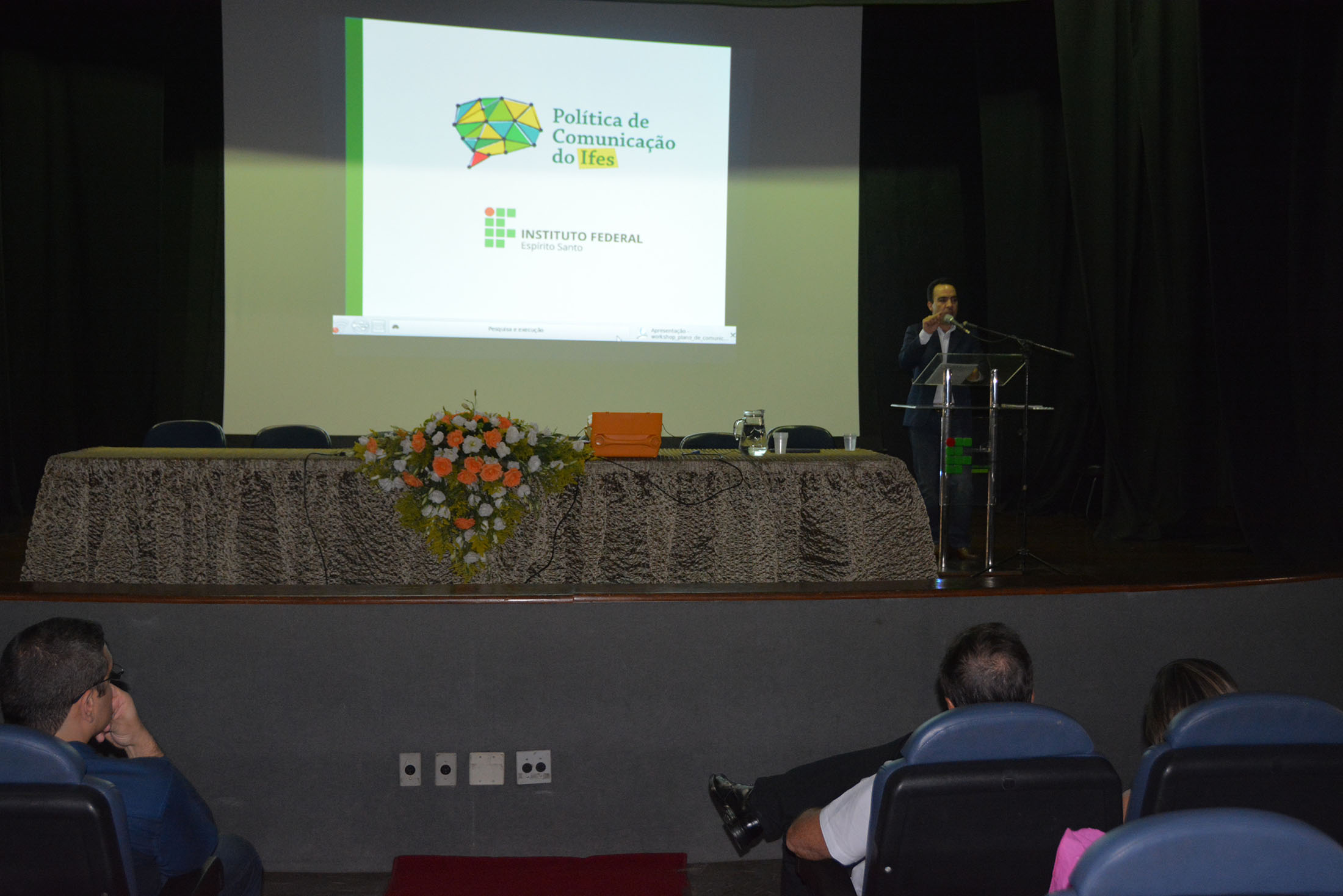 Antes do lançamento da Política, na parte da manhã, os líderes de Comunicação do Ifes e profissionais da Assessoria de Comunicação participaram do “Workshop sobre Plano de Comunicação – Apresentando o Plano Geral de Comunicação do Ifes e Orientando sobre o Plano dos Campi”.