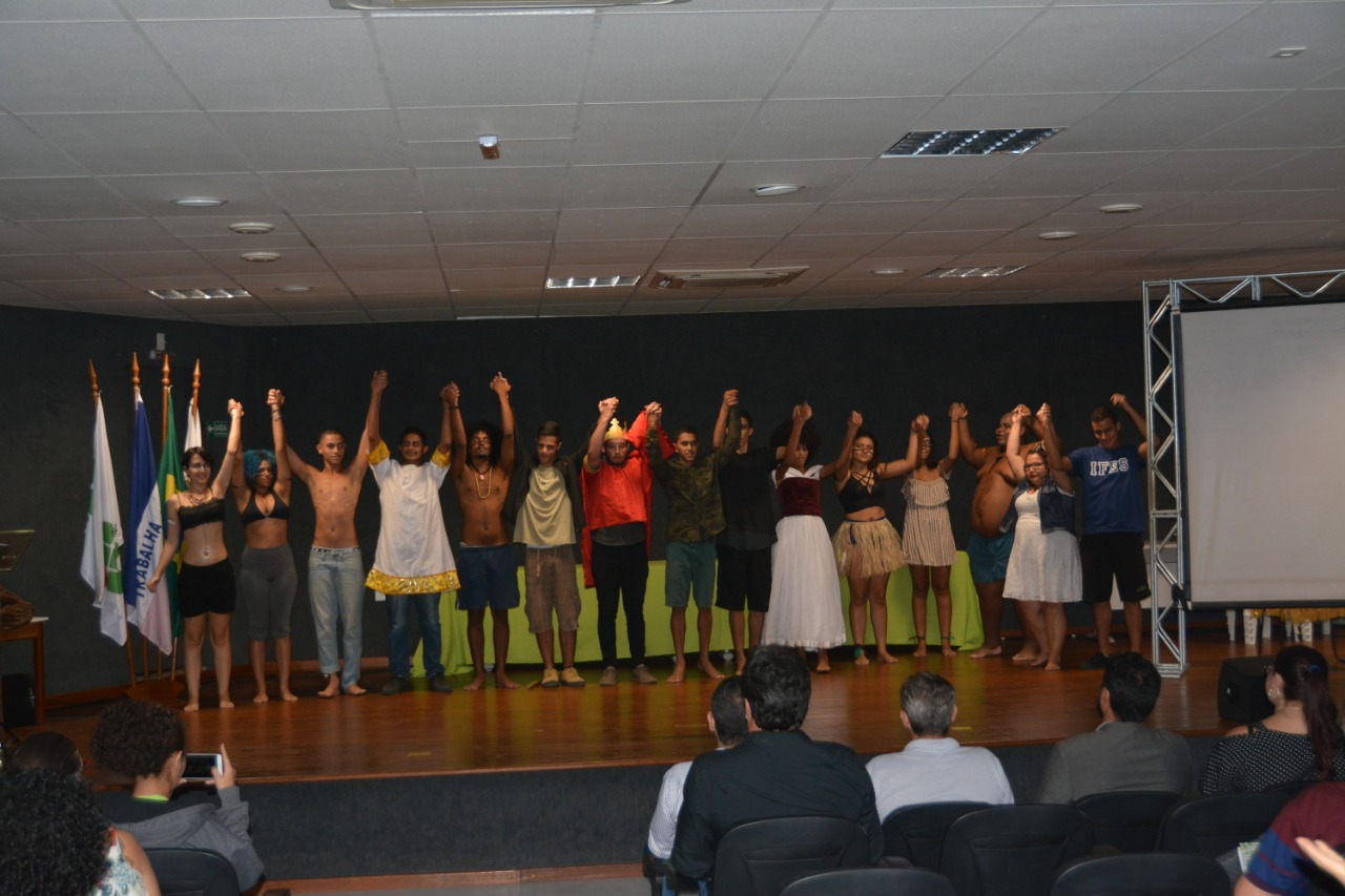 Logo no início da solenidade, os presentes foram surpreendidos com a apresentação teatral “Se eu fosse Caíque”, feita por estudantes do Campus Cariacica, que abordou as questões sobre os povos indígenas e a colonização europeia. Participaram da mesa de honra da solenidade de abertura o reitor do Ifes, Jadir Pela; a pró-reitora de Ensino, Adriana Pionttkovsky, os pró-reitores Renato Tannure (Extensão) e André Romero (Pesquisa e Pós-graduação); o diretor de Ensino Técnico, Sérgio Nery; e o diretor-geral do Campus Cariacica, Lodovico Ortlieb.