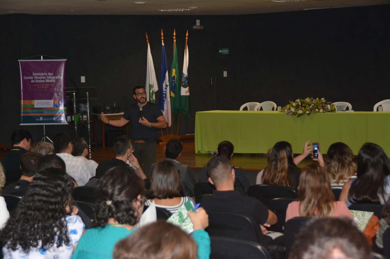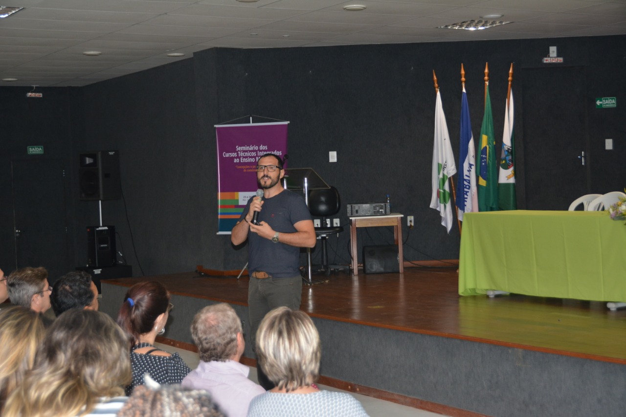 Servidores de todos os campi do Instituto Federal do Espírito Santo (Ifes) participam, nesta segunda e terça (25 e 26), do I Seminário dos Cursos Técnicos Integrados ao Ensino Médio, que tem o objetivo de iniciar um trabalho coletivo para a estruturação diretrizes para área, no âmbito da instituição. A abertura que aconteceu na noite desta segunda-feira (25) lotou o auditório do Campus Cariacica e contou a palestra do servidor do Instituto Federal Sul Rio Grandense (IFSul), Sidinei Cruz Sobrinho.