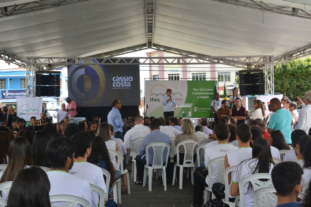 O Campus Montanha, do Instituto Federal do Espírito Santo (Ifes), comemorou na última sexta-feira (29), na praça da cidade, seu aniversário de cinco anos em um evento que reuniu estudantes, servidores, parceiros do campus, diversos gestores da instituição, como o reitor, Jadir Pela; além de autoridades políticas do município e região, e o governador do Espírito Santo, Renato Casagrande.