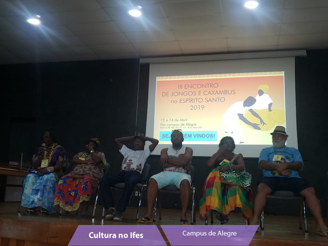O campus recebeu este ano o III Encontro Estadual de Jongos e Caxambus no Espírito Santo, entre os dias 12 e 14 de abril, realizado pelo Instituto do Patrimônio Histórico e Artístico Nacional (Iphan). O evento propiciou a participação dos grupos do Estado nas discussões sobre o andamento da salvaguarda, bem como possibilitou a fruição e difusão da cultura do jongo e do caxambu.