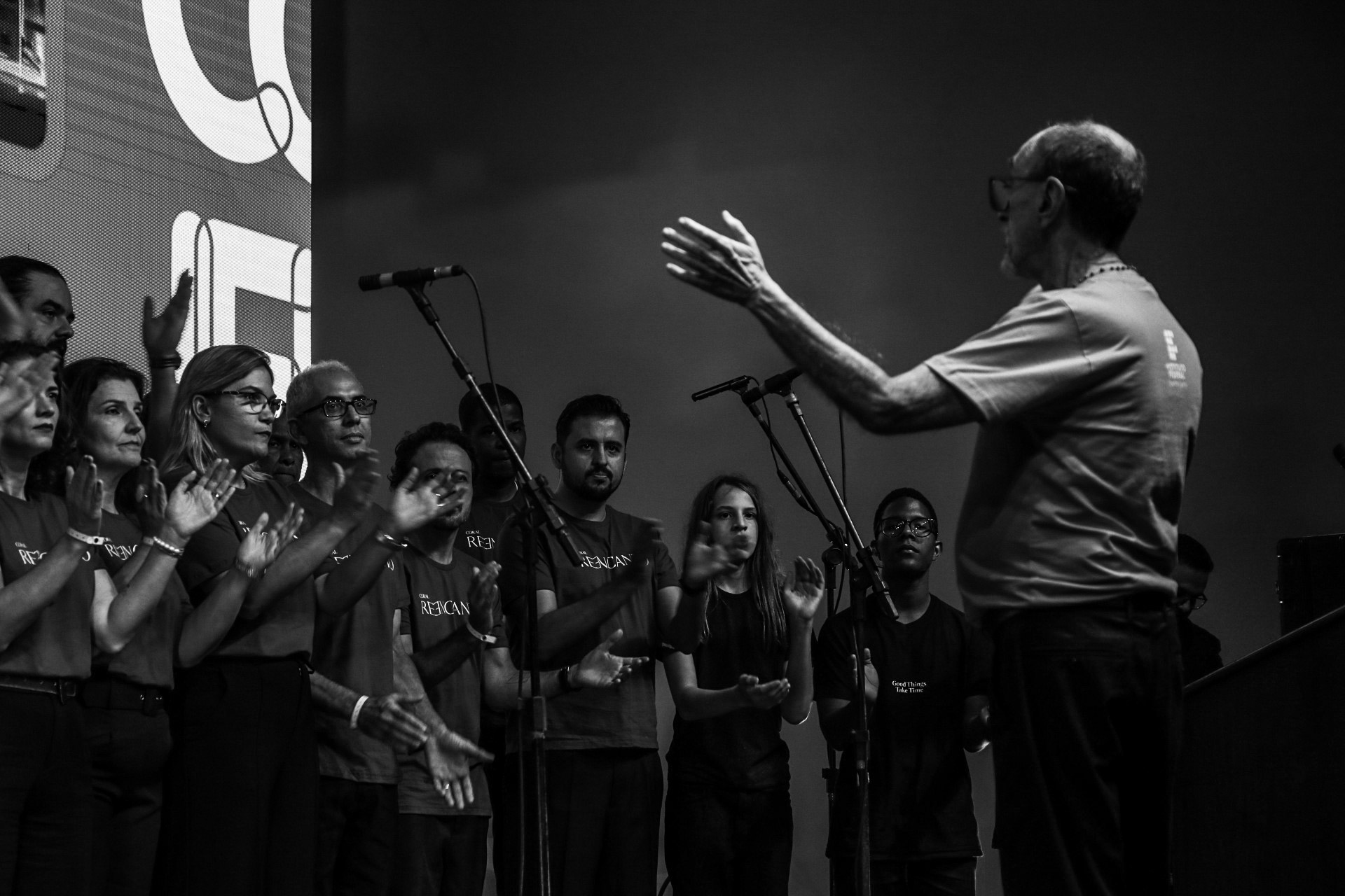 Após a exibição do vídeo, foi a vez dos corais ReEncanto (Reitoria) e Cameria (Campus Vitória) se apresentarem juntos. Em seguida, o diretor-geral do Campus Nova Venécia vice-presidente do Fórum de Diretores-Gerais, Anderson Rozeno Bozzetti Batista, falou sobre a expectativa quanto ao evento. "Esse é o momento de realização de um sonho desde 2019 e é um espaço para promover integração e troca de experiências para que a instituição continue avançando", afirmou. Ele relembrou ainda sua própria trajetória no Ifes como aluno e servidor e destacou que "o que vemos hoje na instituição é fruto do desejo e do trabalho de realizar sonhos".