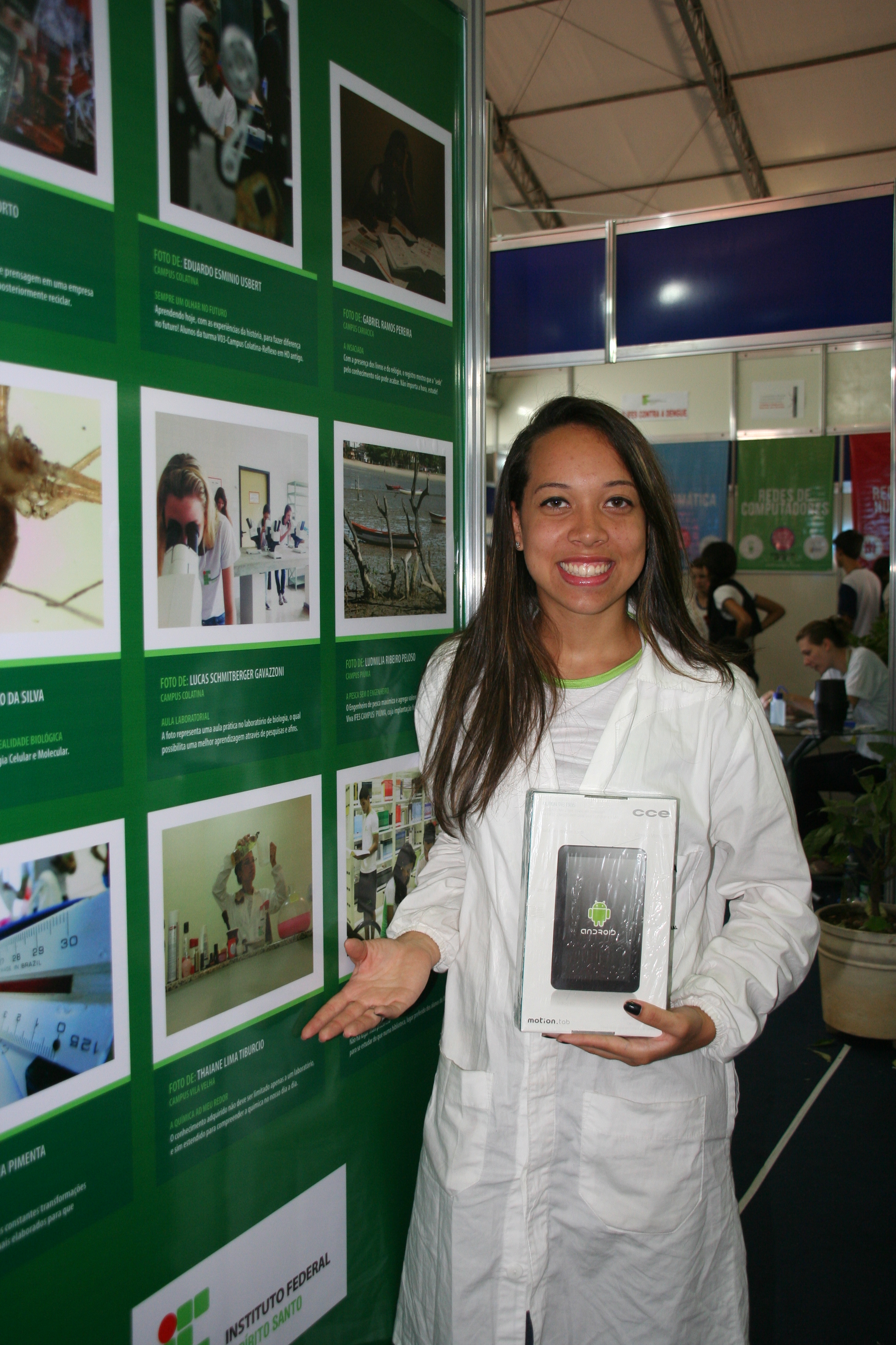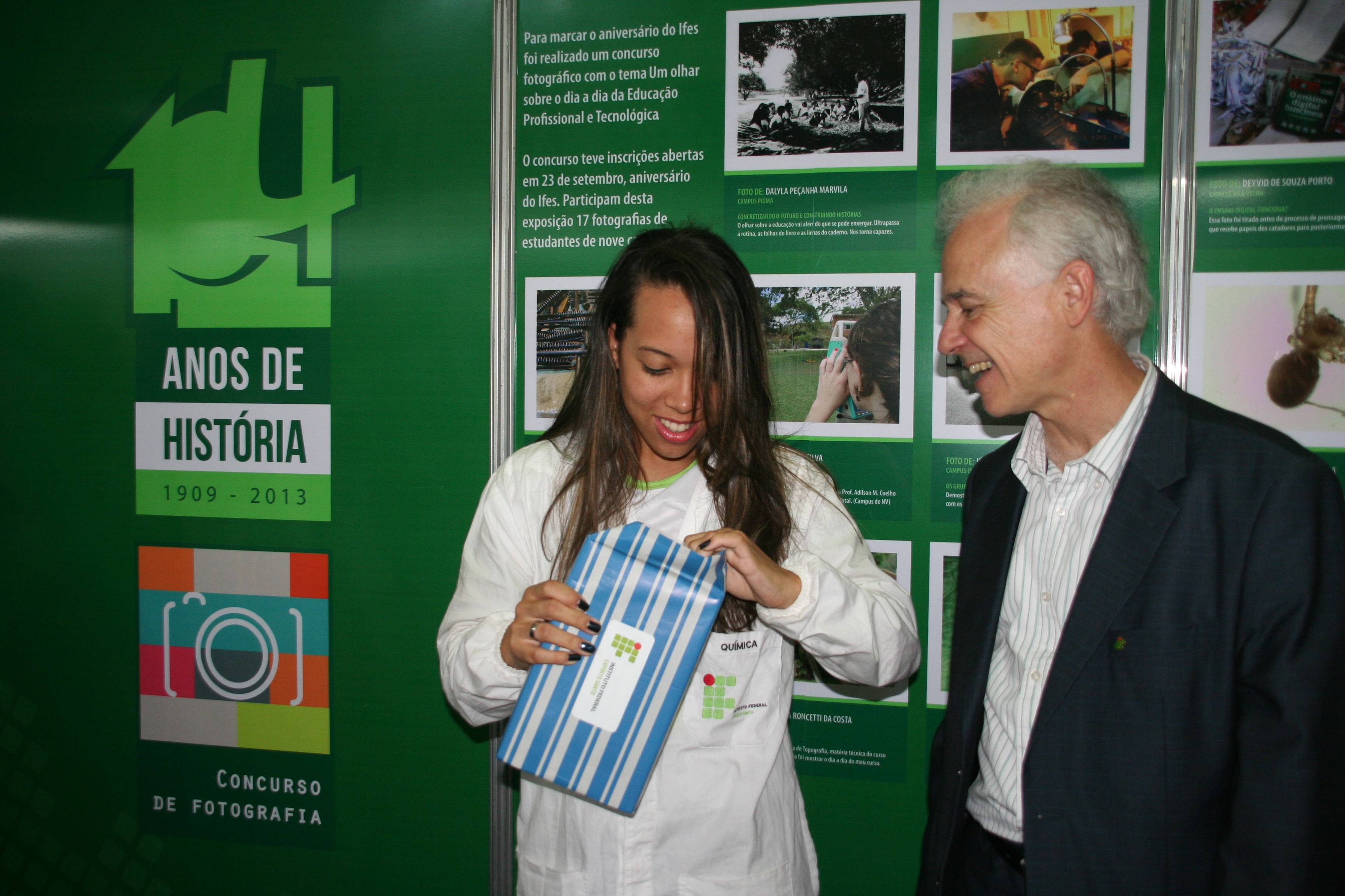 As fotografias enviadas por alunos que participaram da competição ficaram expostas no local e, na quinta-feira (24), o reitor fez a entrega do tablet à vencedora, a aluna Thaiane Lima Tibúrcio, do curso Técnico em Química do campus Vila Velha.