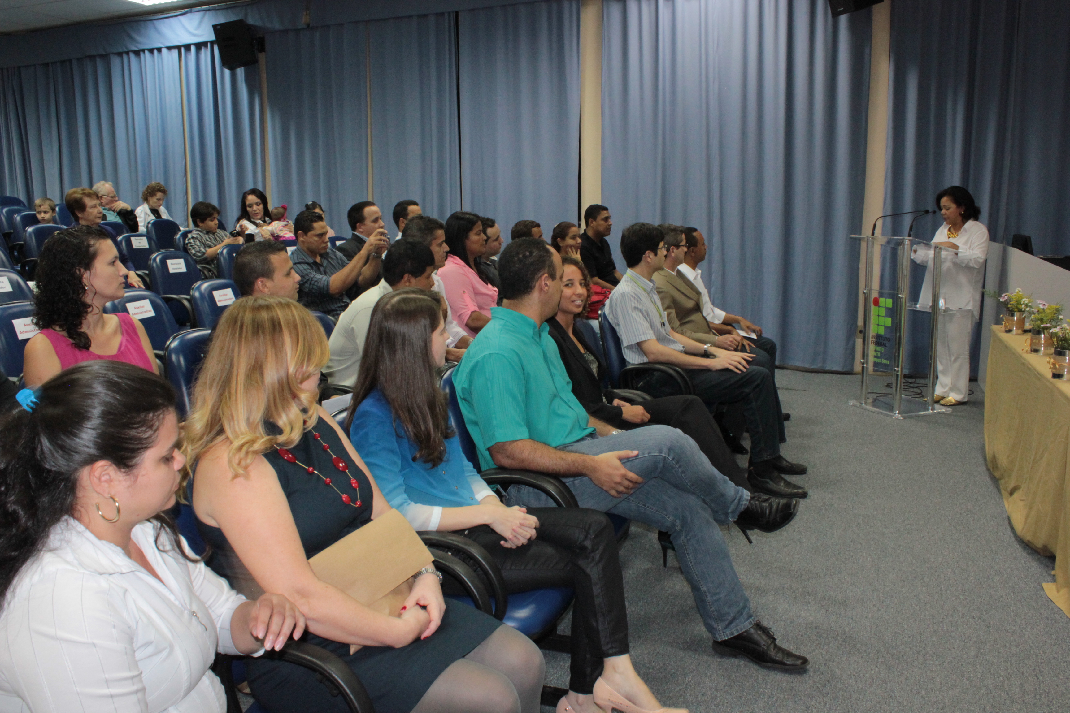 No dia 29 de agosto, no auditório do campus Serra, aconteceu a cerimônia de encerramento dos cursos de Formação Inicial Continuada - Fic, ofertados pelo Programa Nacional de Acesso ao Ensino Técnico e Emprego - Pronatec. Estavam presentes o diretor geral e coordenador adjunto do Pronatec-Fic no Campus, José Geraldo Orlandi, a supervisora do curso de Auxiliar Administrativo, Sara Coelho Gregório Dias, o supervisor do curso Eletricista Instalador Predial de Baixa Tensão, Giovani Freire, o supervisor do curso Operador de Computador, Eduardo Max Amaral, a pedagoga, Maria da Penha Tresena Silva e diversos professores qua atuaram nos cursos.