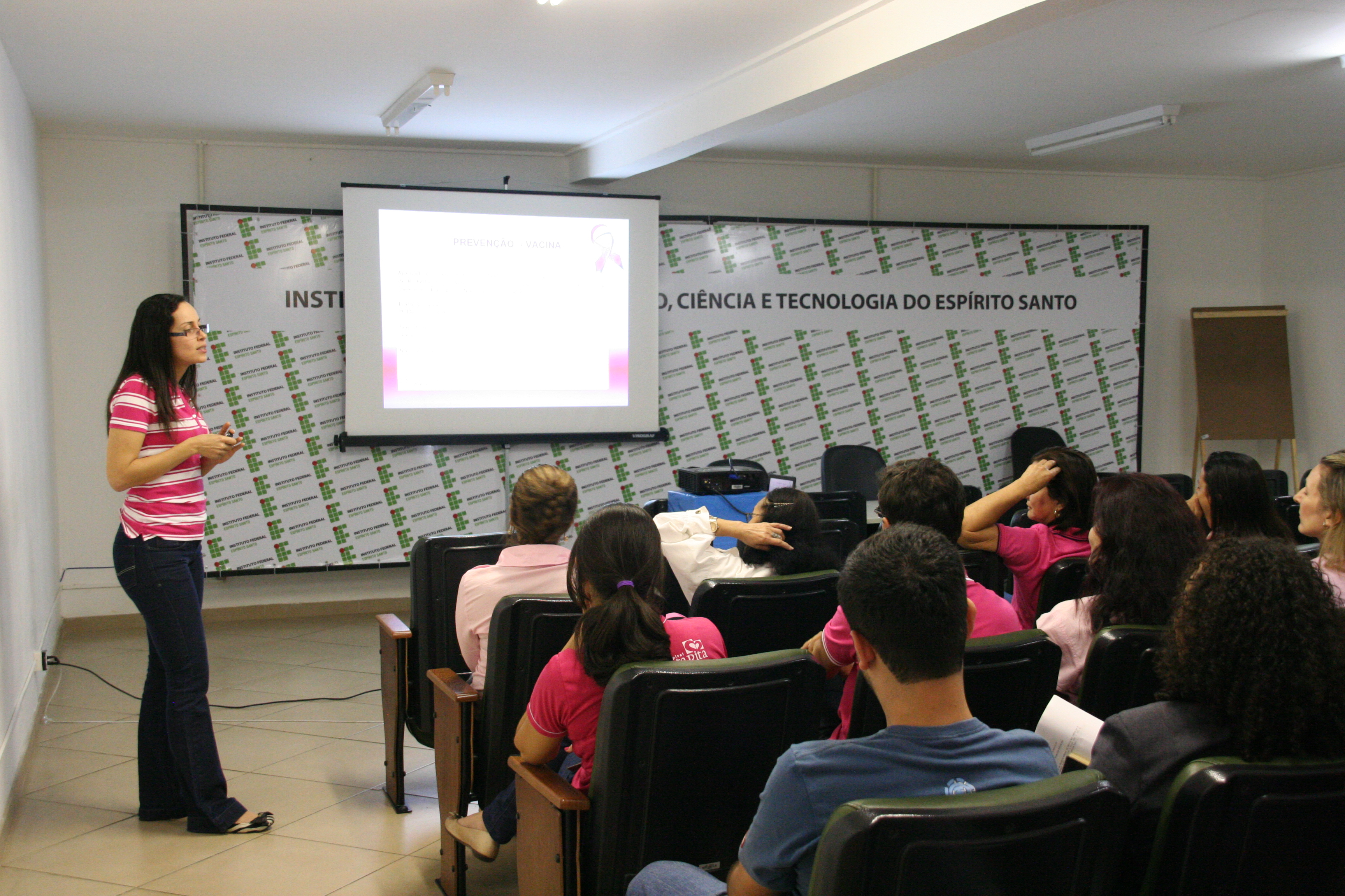 A Coordenadoria de Atenção à Saúde do Servidor – CASS realizou uma palestra sobre prevenção ao câncer de mama e colo de útero para os servidores da Reitoria. A palestra foi ministrada pela médica do trabalho da CASS Adriana Vilarim Fernandes Fávaro no dia 10 de outubro, em apoio à campanha Outubro Rosa.
