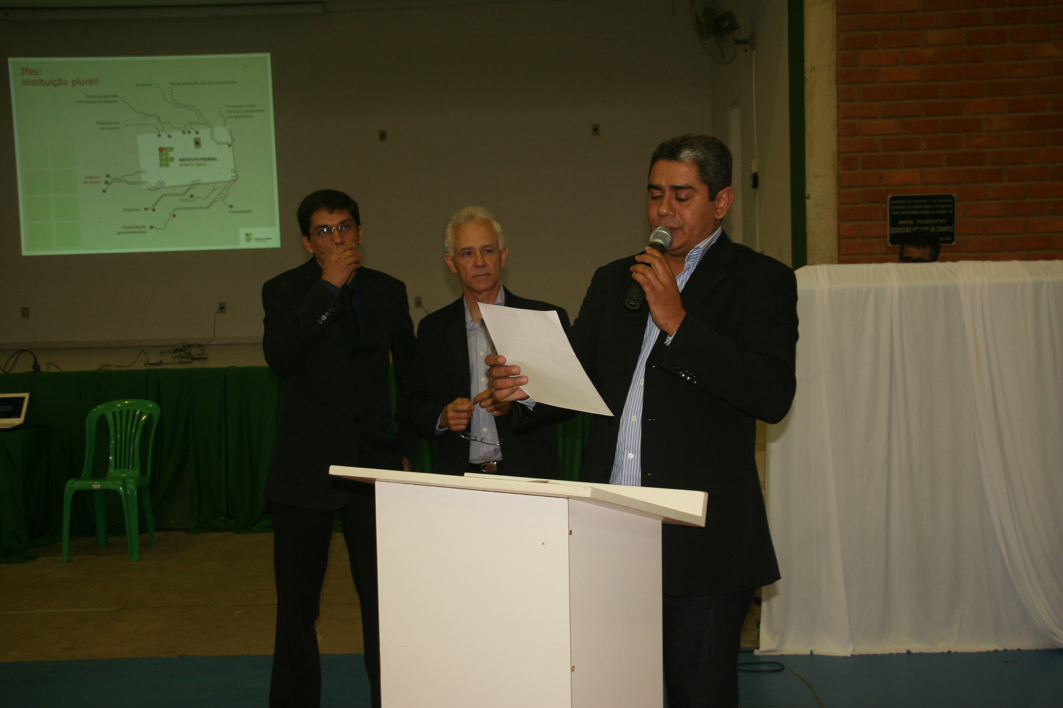 No dia 28 de agosto, o Reitor do Instituto Federal do Espírito Santos - Ifes, Denio Rebello Arantes, foi ao campus Itapina para apresentar a nova equipe gestora do Instituto e dar posse ao diretor-geral, Anderson Mathias Holtz.