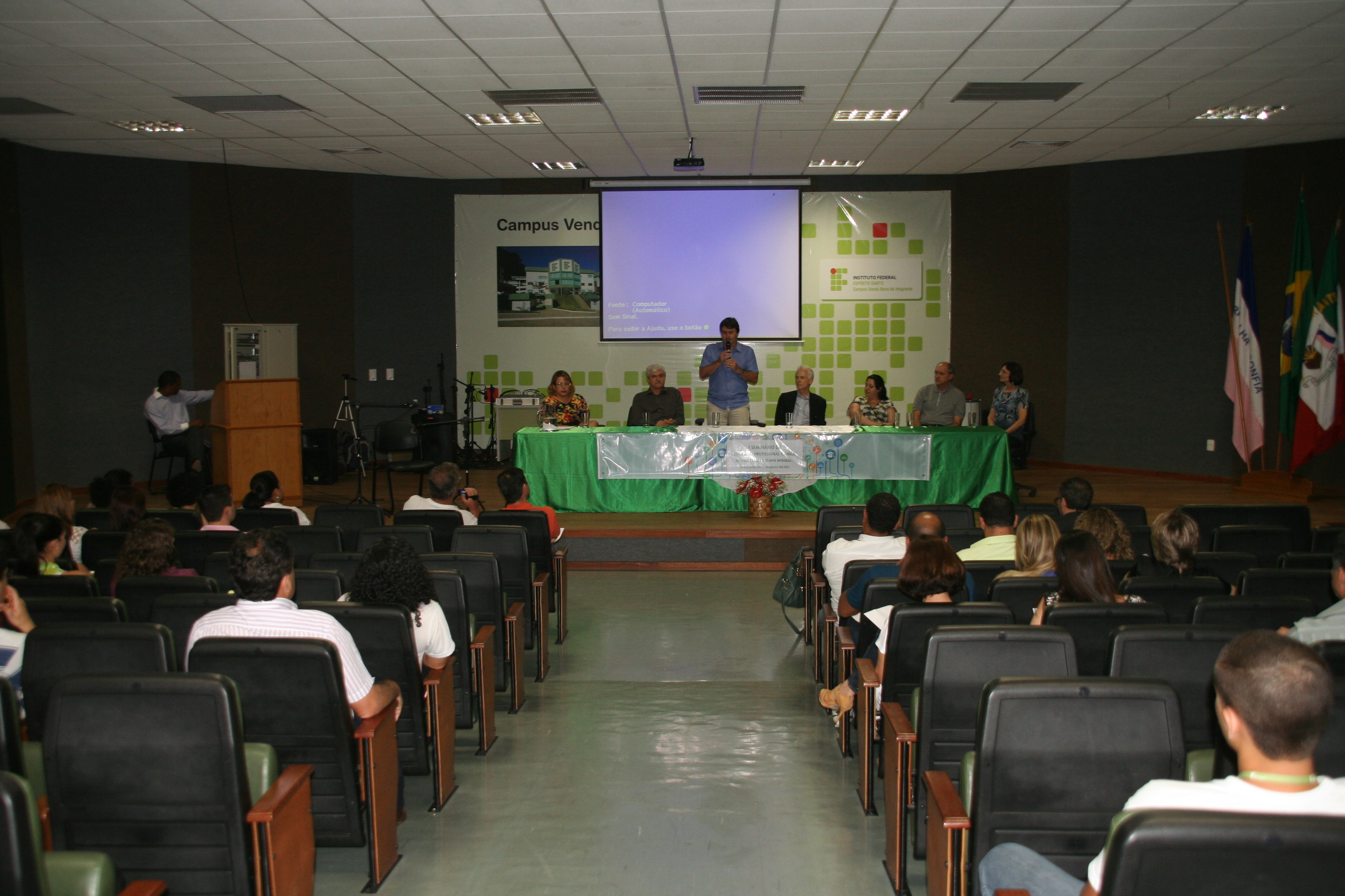 Servidores, estudantes e pessoas de outras instituições participaram I Seminário de Educação Profissional Técnica de Nível Médio em Tempo Integral: Oportunidades e Desafios no Ifes. O evento foi realizado nos dias 12 e 13 de novembro, no campus Venda Nova do Imigrante. A cerimônia de abertura contou com a palestra “Desafios e possibilidades da/na educação integral: pensando outros espaços e tempos escolares”, com o professor Fábio Luiz Alves de Amorim, gerente de Ensino Médio na Sedu.