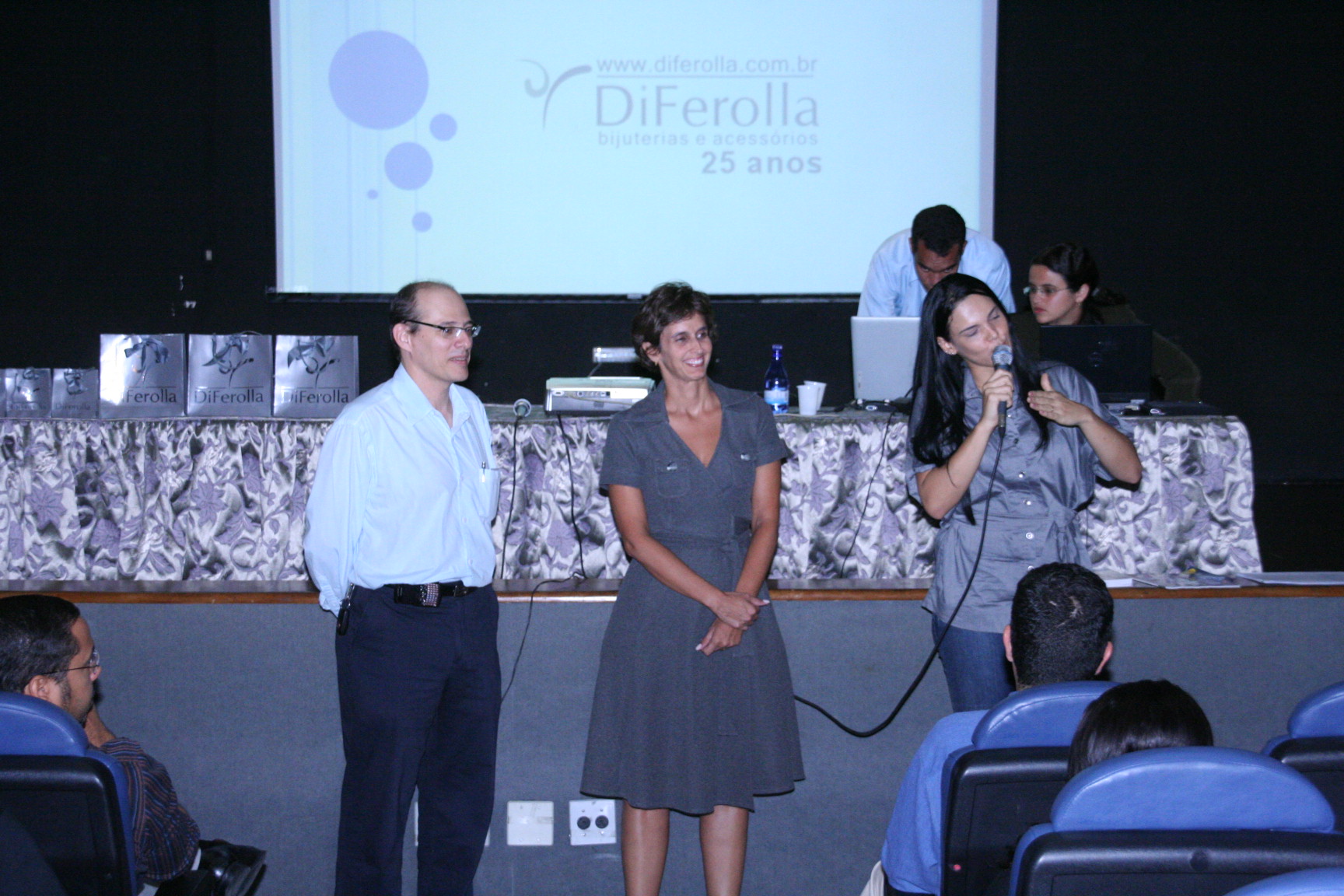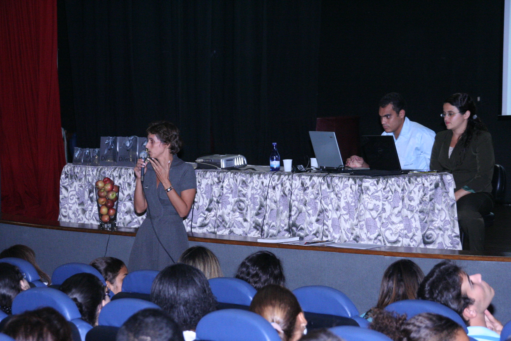Palestra de abertura do programa Junior Achievement com a sócia-fundadora da empresa Di Ferolla, Lourdes Ferolla Leandro, no auditório do campus Vitória do Ifes, no dia 7 de abril de 2010.