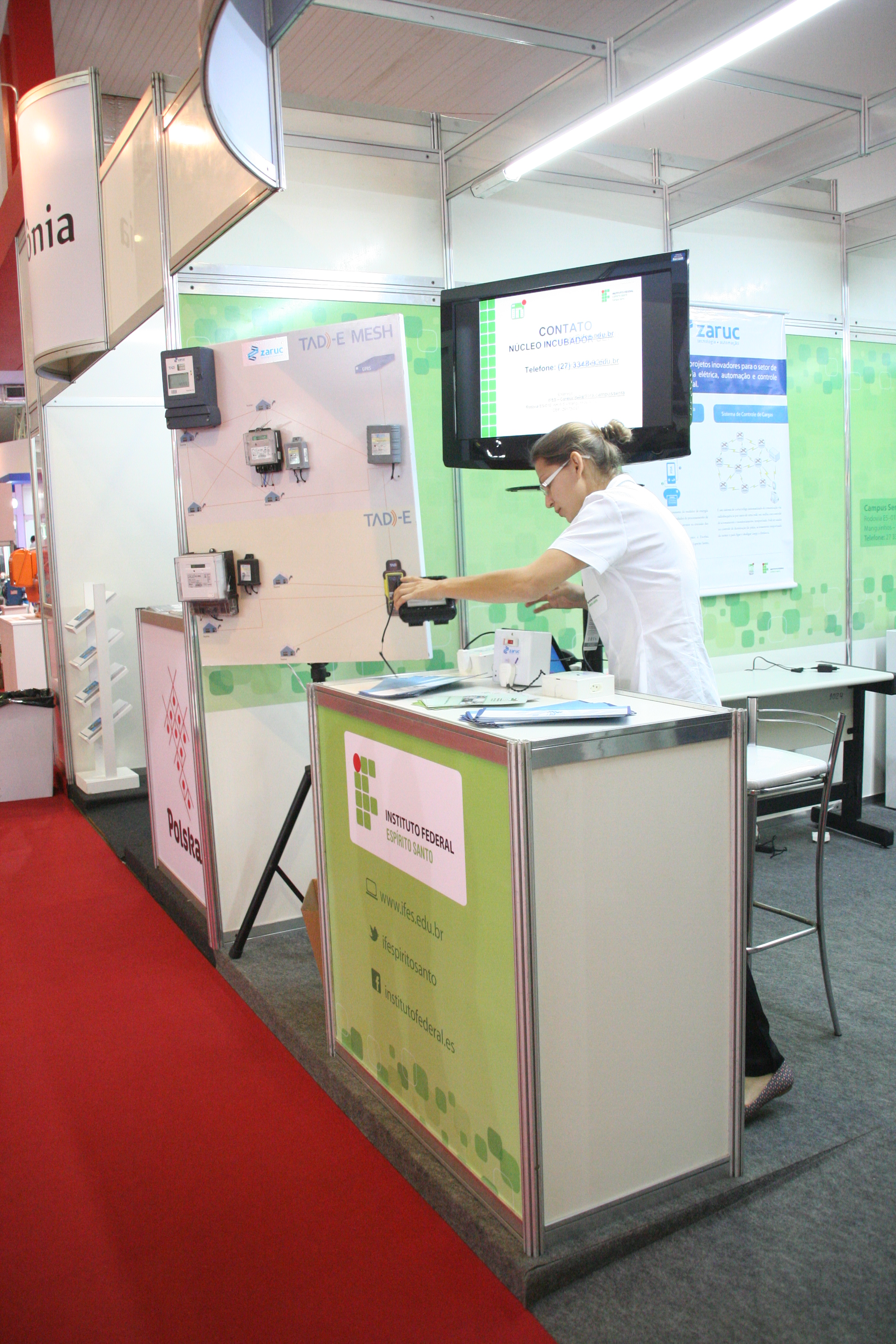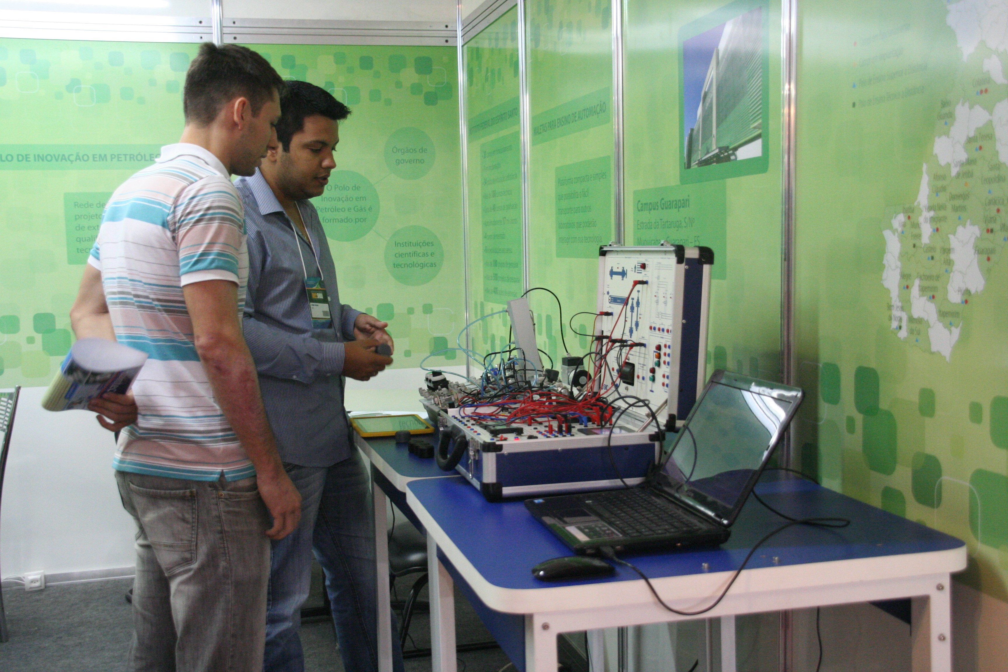 O Instituto Federal do Espírito Santo (Ifes) esteve presente na 7ª Feira de Metalmecânica, Energia e Automação (MEC SHOW), que ocorreu entre os dias 22 e 25 de Julho, no Carapina Centro de Eventos (Pavilhão de Carapina), na Serra. A MEC SHOW é a principal feira do segmento de metalmecânica e automação no Estado e reúne as principais empresas de automação, mecânica e energia, apresentando novidades e tendências para o mercado nacional. O Ifes foi representado pelos projetos aprovados em chamada interna realizada pela Pró-Reitoria de Extensão (Proex), são eles a Soluções de Inovação da Empresa Zaruc (Campus Serra), que apresenta produtos desenvolvidos pela Zaruc, empresa vinculada à Incubadora do campus; Maletas para Ensino de Automação (Campus Guarapari), plataforma compacta para transporte para atividades em outros laboratórios; e o Polo de Inovação em Petróleo e Gás e Rede de Cooperação em PD&I (Reitoria), que trata da rede de cooperação em projetos de pesquisa aplicada, extensão tecnológica e qualificação profissional.