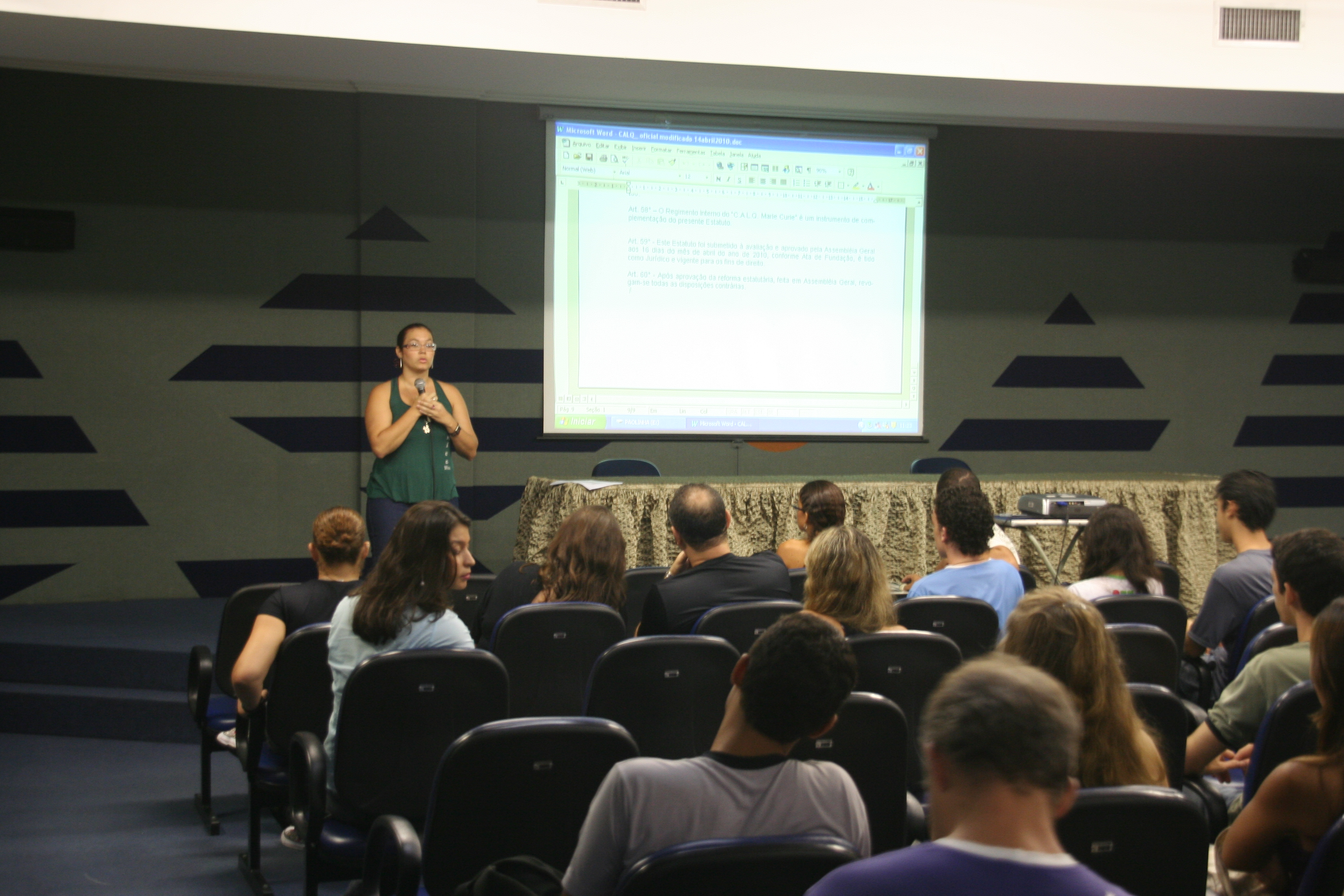 Assembléia realizada no dia 16 de abril de 2010 para aprovação do Centro Acadêmico de Química.