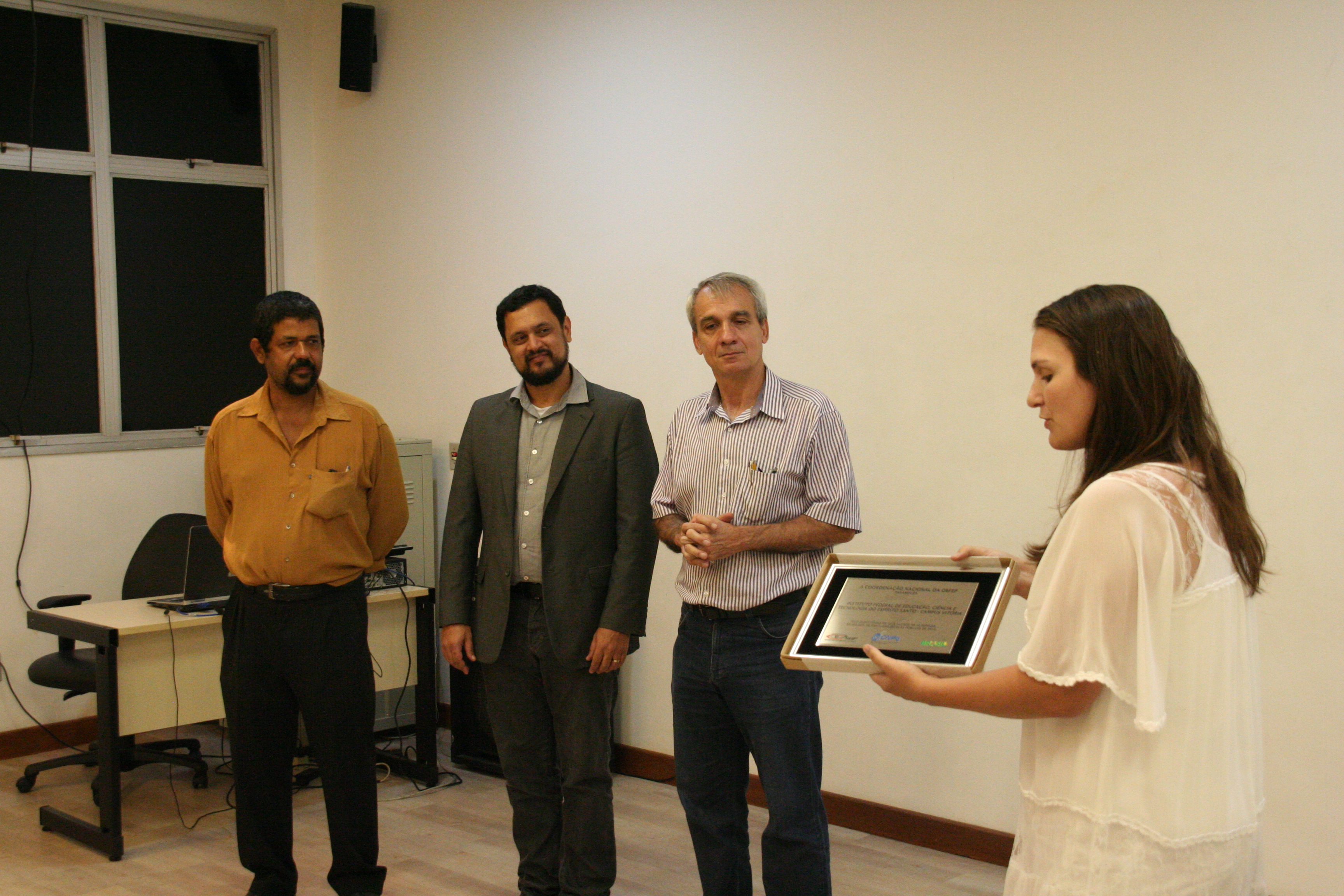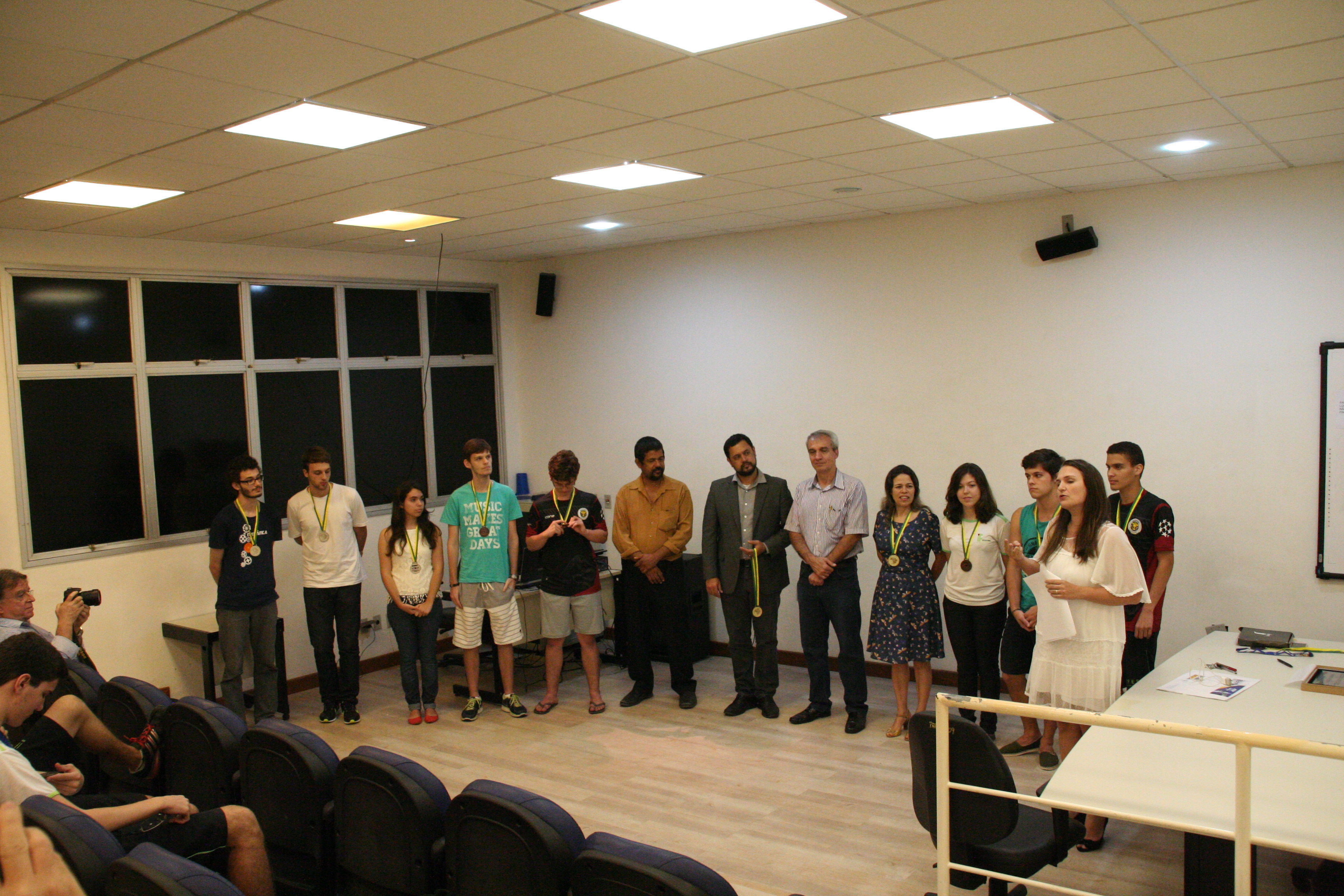Os alunos do Campus Vitória que se destacaram na Olimpíada Brasileira de Física (OBF) e na Olimpíada Brasileira de Física das Escolas Públicas (OBFEP) de 2014 receberam medalhas pelo seu desempenho, no dia 17 de setembro. A cerimônia de premiação aconteceu no miniauditório do Campus Vitória e foi presidida pela professora Aline Costalonga Gama, coordenadora regional das duas olimpíadas.