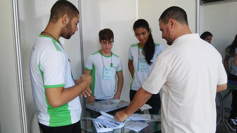 Um trabalho de cinco alunos do Campus Nova Venécia foi destaque na Feira de Matemática, realizada dentro da programação da 5º Semana de Matemática do Ifes, que aconteceu no Campus Vitória entre 18 e 21 de maio. Aliny Pansieri Grillo, Eric Rabelo, Gabriel Balbino dos Santos, Heberly Coutinho da Silva, Triza Ramos Vieira e Mayara de Oliveira Nascimento, que estão no 3º ano do Técnico Integrado em Edificações, desenvolveram o “Jogo das 3 Pistas”.